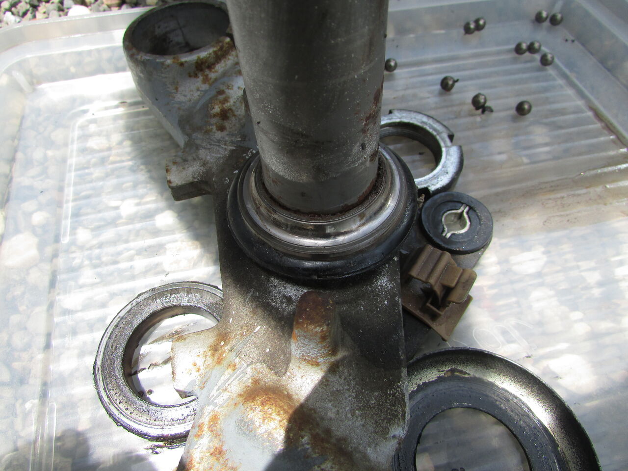 ナットを完全に取り外してステムを分離。球がコロコロ落ちてきちゃうのはご愛敬。
