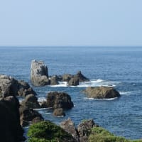 (正面の尾根の向こうが原発計画地)住民投票や町長のリコール運動で騒然とした巻原発問題は、町有地の売却を巡って最高裁まで争われ、結局、推進派が敗れ、東北電力は建設を断念した。かつては「越後の毒消し売り」の女たちが行商で稼いだ財を持ち帰り、豊かな集落が営まれていたという角海浜は、原発計画で廃村となり、いまでは山の稜線の奥深く、薮と砂浜に戻りつつあるらしい。一種の負の産業遺産とでも言えそうな歴史である。