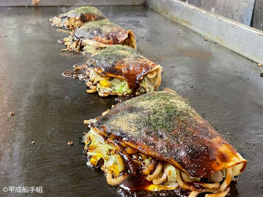 佐伯)広島は、生地→キャベツ→麺があるみたいな感じですけど、三津浜焼は生地の上に麺があってその上にキャベツがのるという…