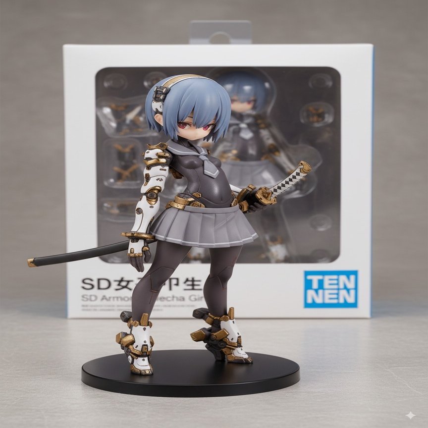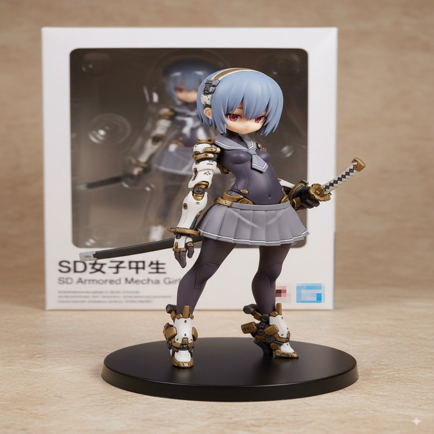 作例:「SD女子甲生」と「SD Armored Mecha Girl」を入力しています。英語は完璧ですが日本語の一部表記が崩れています。ロゴは「3:4」で作成(後述)。