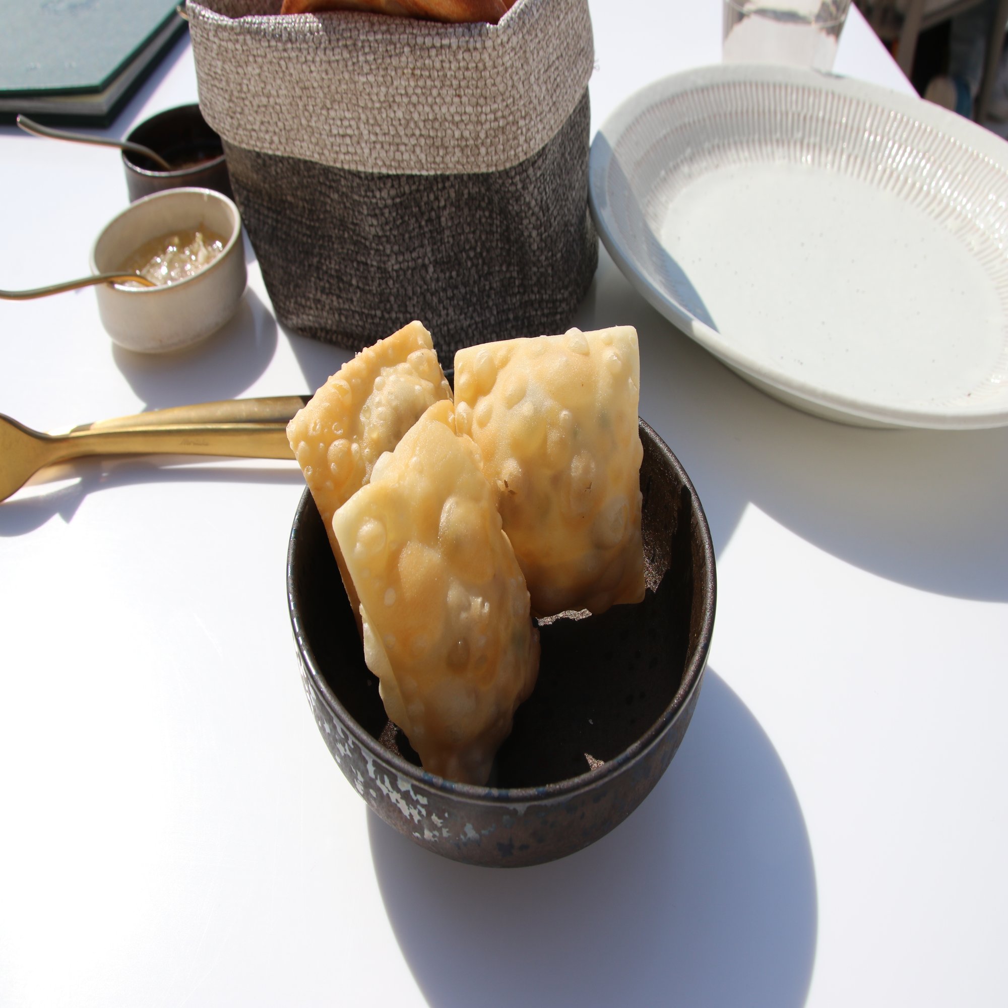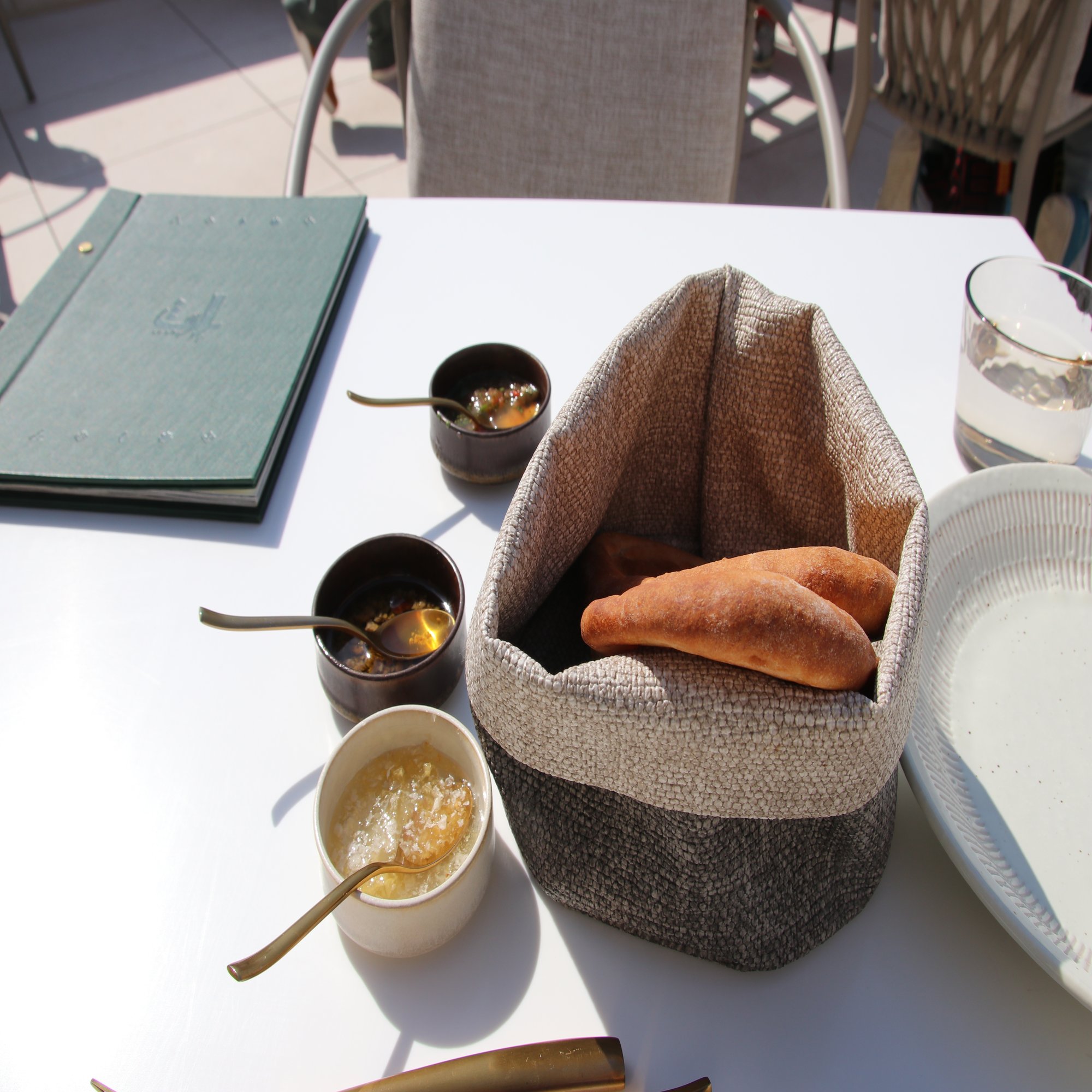 パンの表記での「添える」とは、おそらくジャムのようにつけるものを指している。筆者はミーファを食べたのだが、パンに付けるはちみつとオイルが付いてきた。