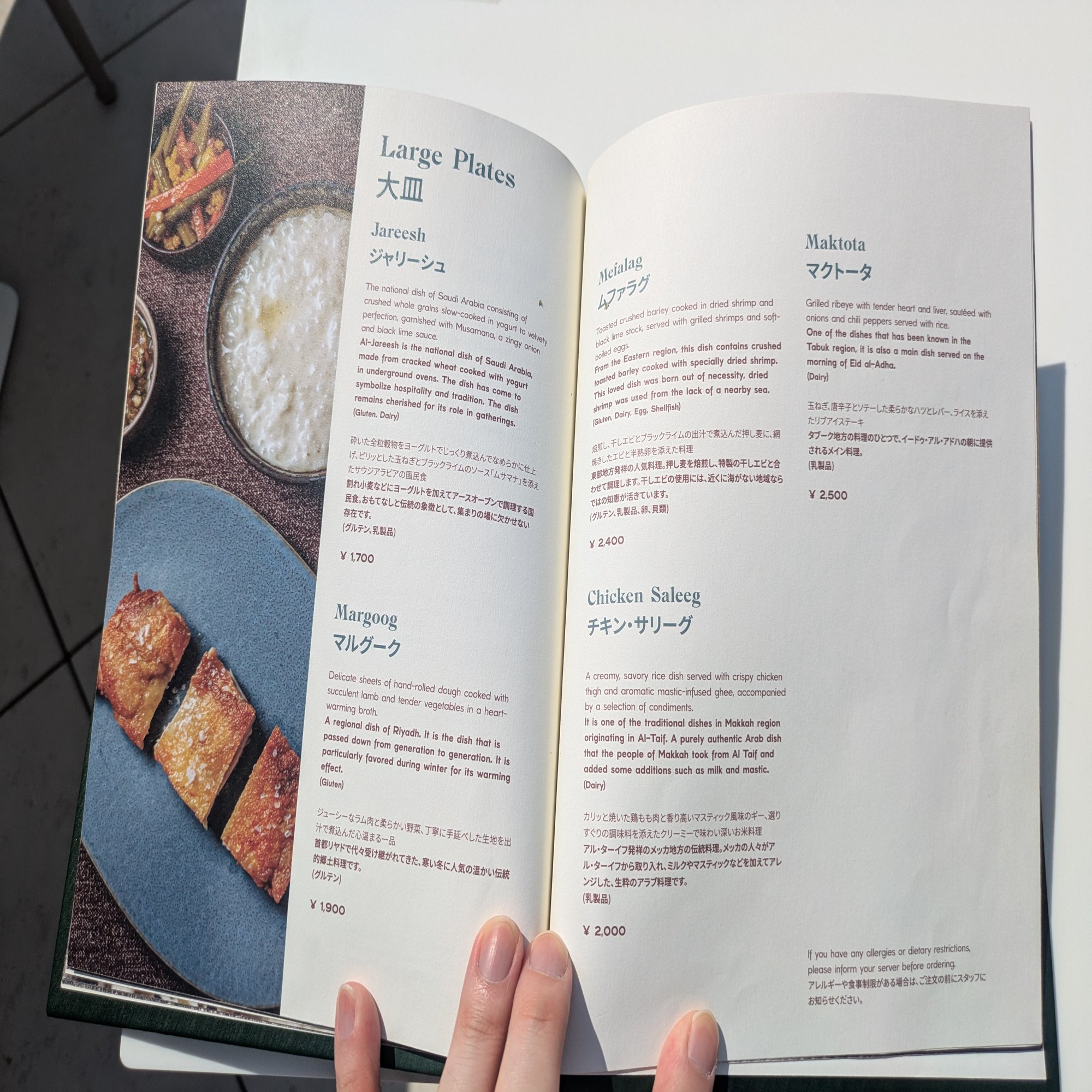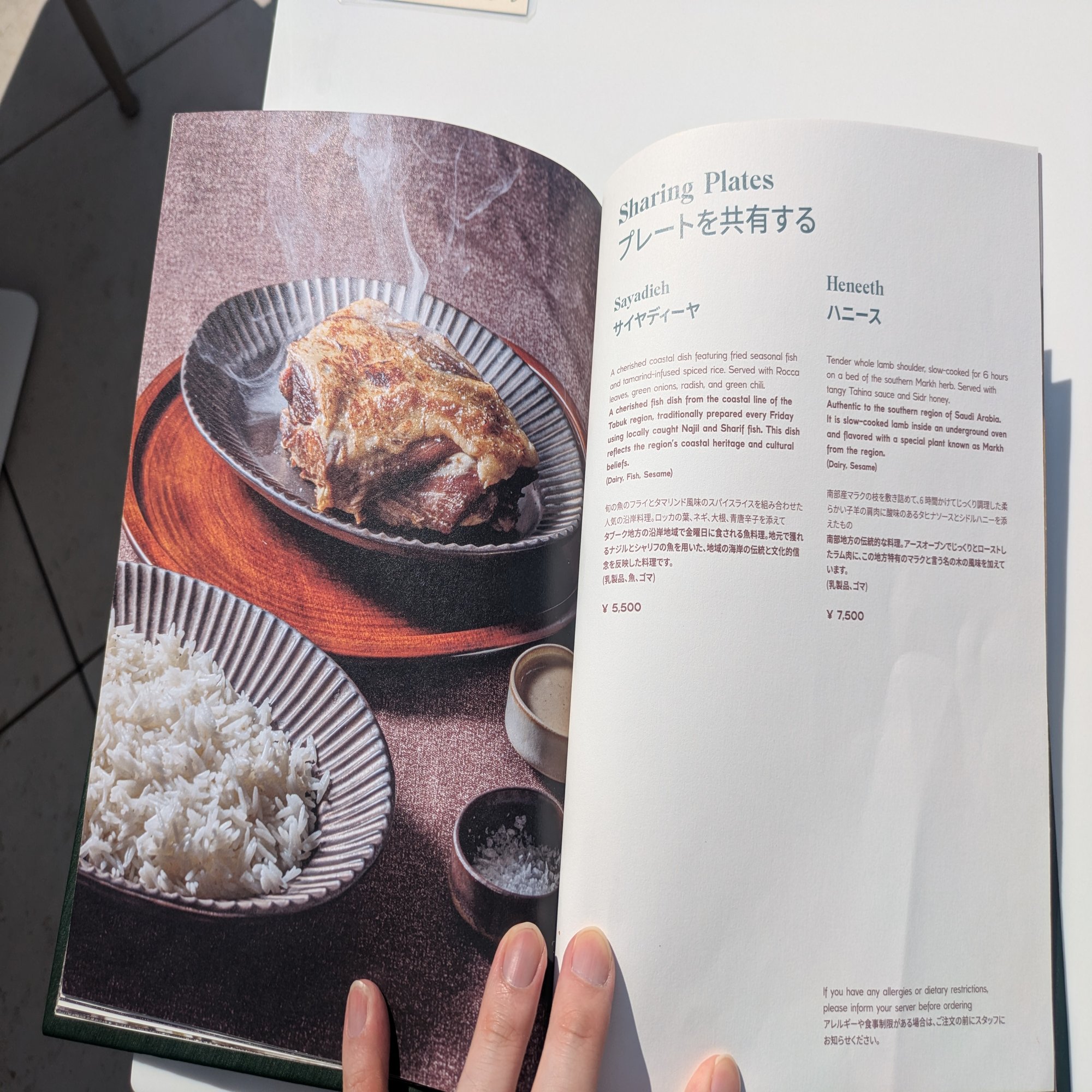 ・上記メニューとは別に、1万5000円の「サウジ体験メニュー」が存在する。基本的に食べ物は被っているものの、選べるもの、選べないものもあるようだった。