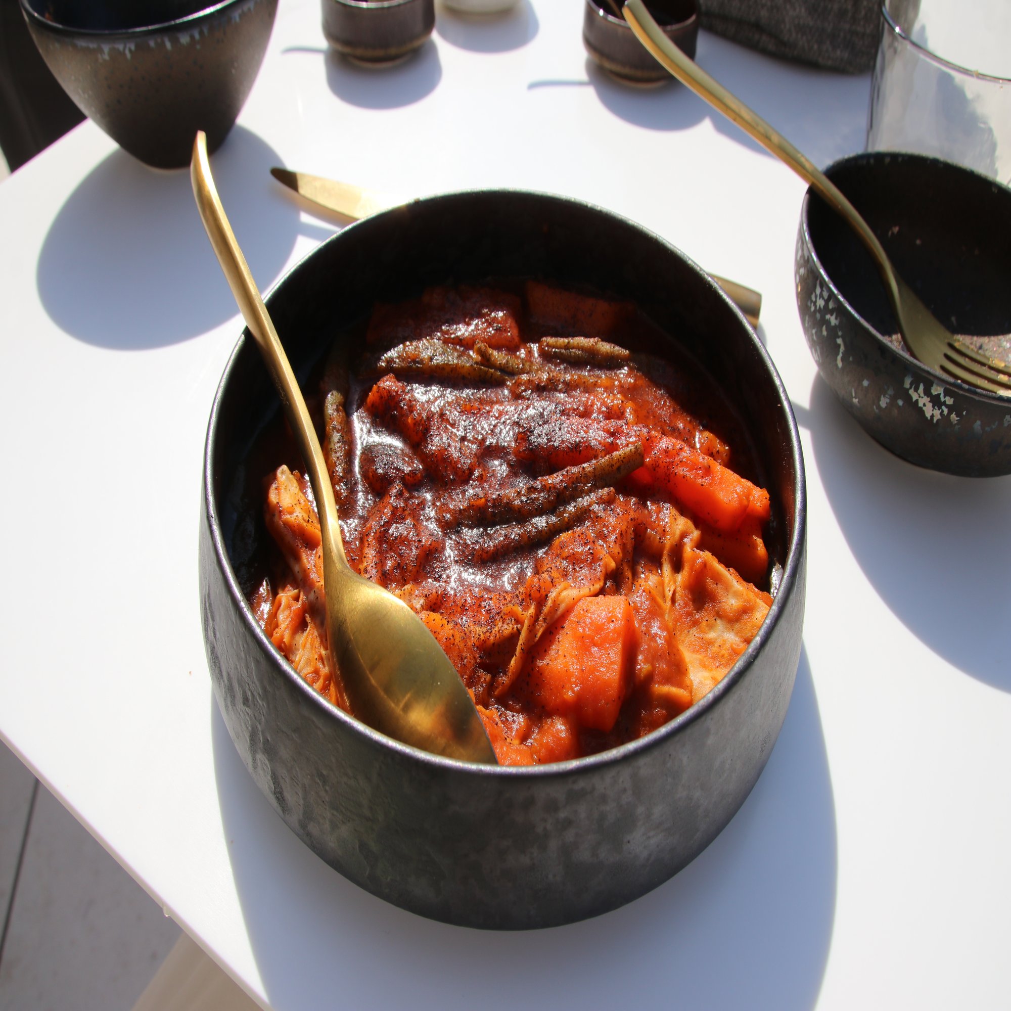 Mobasal(モバサル)、価格1100円:ターメリック風味の揚げ玉ねぎを軽くつぶし、甘いデーツシロップで和えたおかず