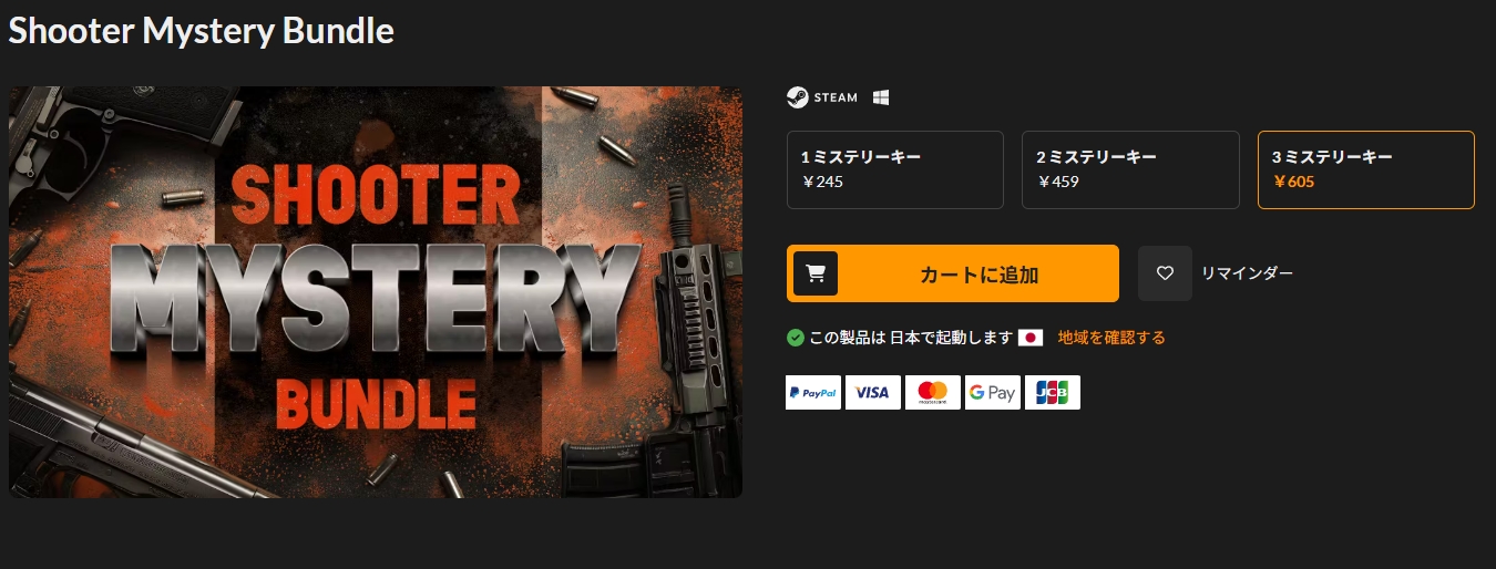 1週間前ほど前に購入した「Shooter Mystery Bundle(記事)」は常設でしたが、こちらは普段通り期間限定になります。