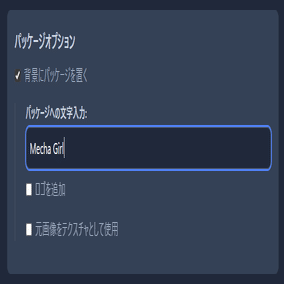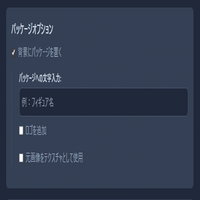 「背景にパッケージを置く」か否かを選択できます。こちらにチェックを入れるとメインキャラの後方にパッケージを配置することができます。パッケージがあるとより現物感が出てワクワクしますよね。