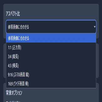 アスペクト比をクリックするとドロップダウンメニューが開きます。