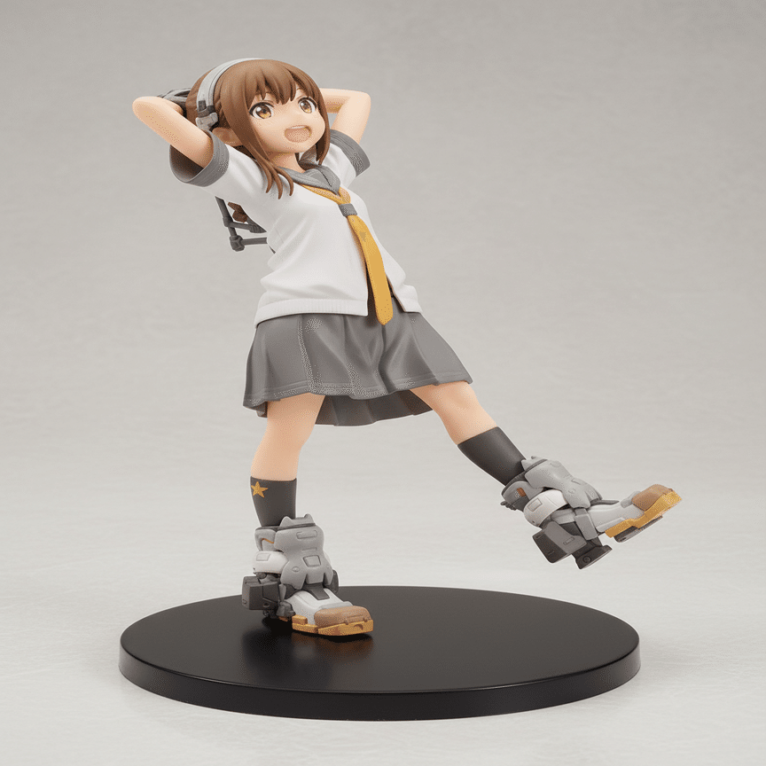 「背景オプション」にチェックを入れない場合は、基本プロンプトに含まれている背景指示で生成されます。ここまでの作例がその状態ですね。商品カタログらしくフィギュアを目立たせるには良いですが、臨場感を出したい場合はやはり背景がある方が良いです。