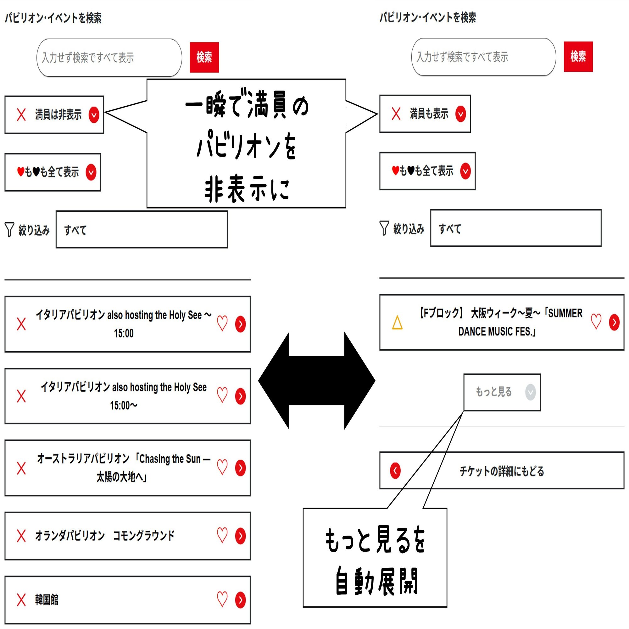 興味のないパビリオンを非表示♥登録