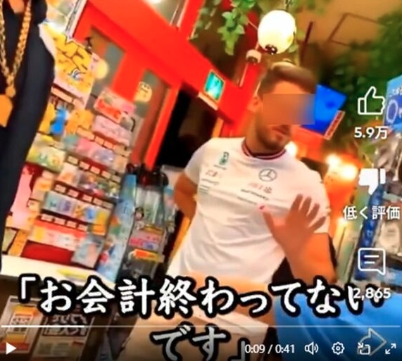 映像では1人の外国人客が支払いを済ませずに店を出ようとする様子が映っており、店員が制止するも、客は日本語が通じないフリをして仲間たちと笑い飛ばす。そのまま言い争いが続き、動画は30秒ほどで途切れているが、結局支払いをせずに立ち去ったとされる。