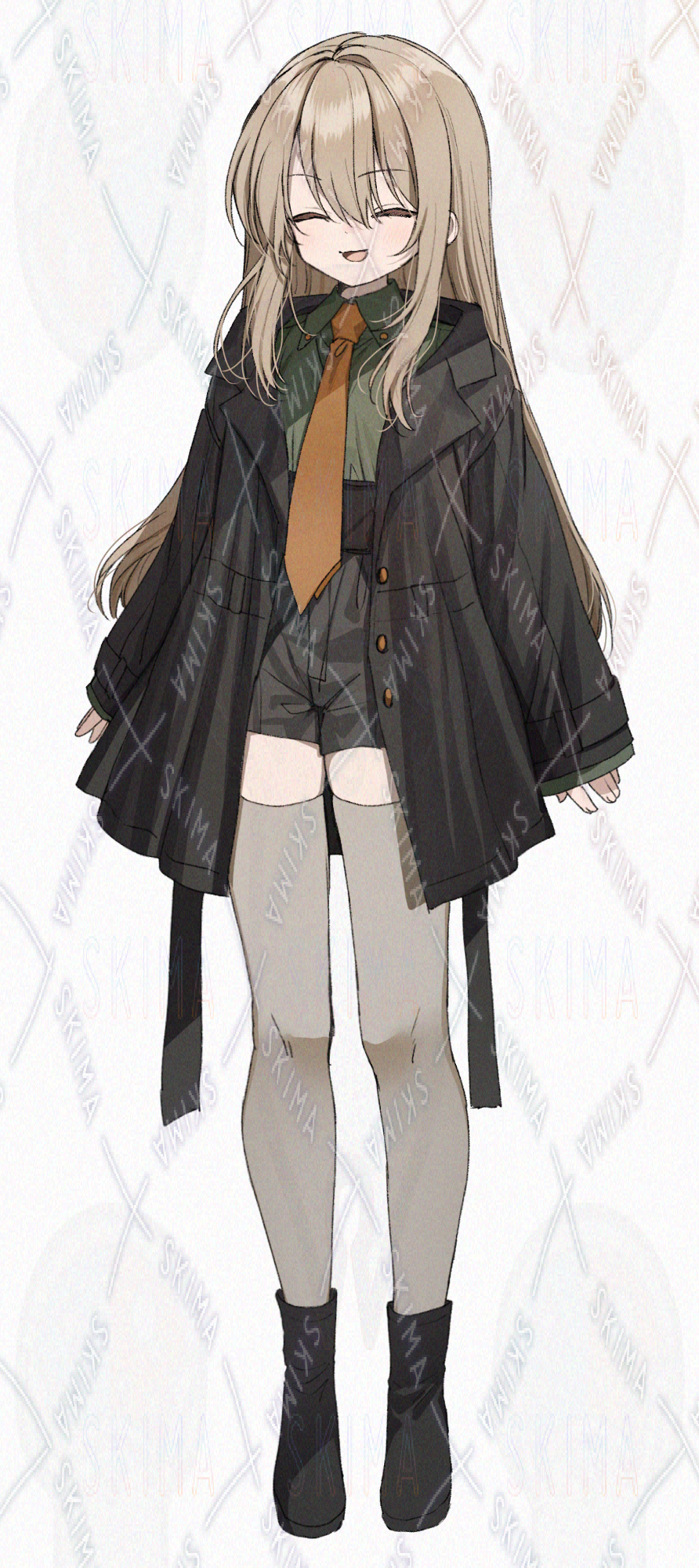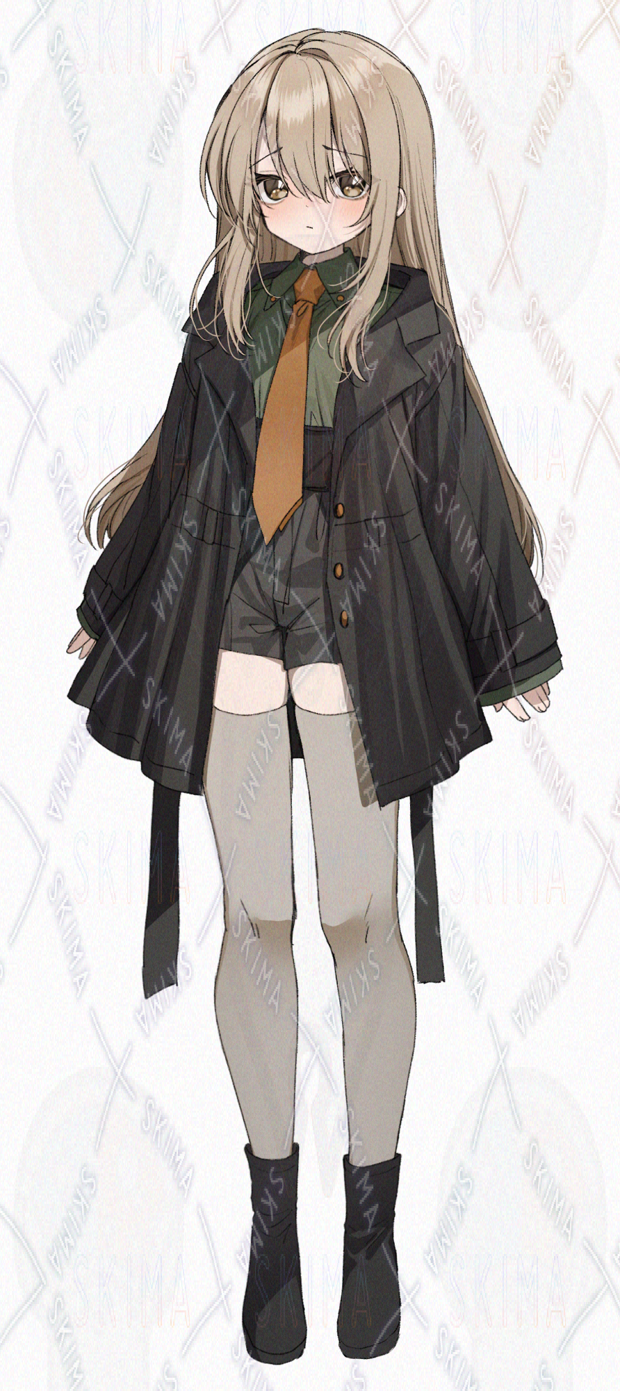 トレンチコート風の黒いコートを着た女の子です。キャラ設定はご自由に。