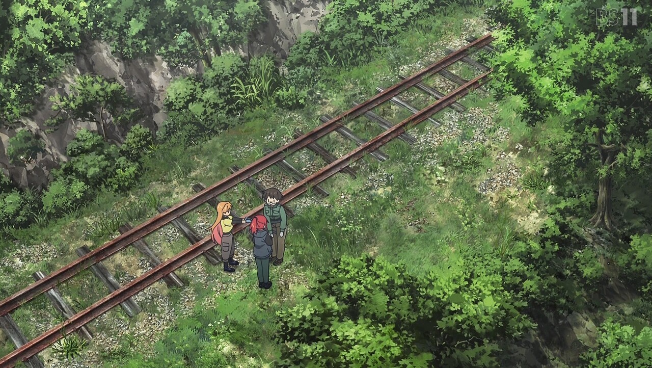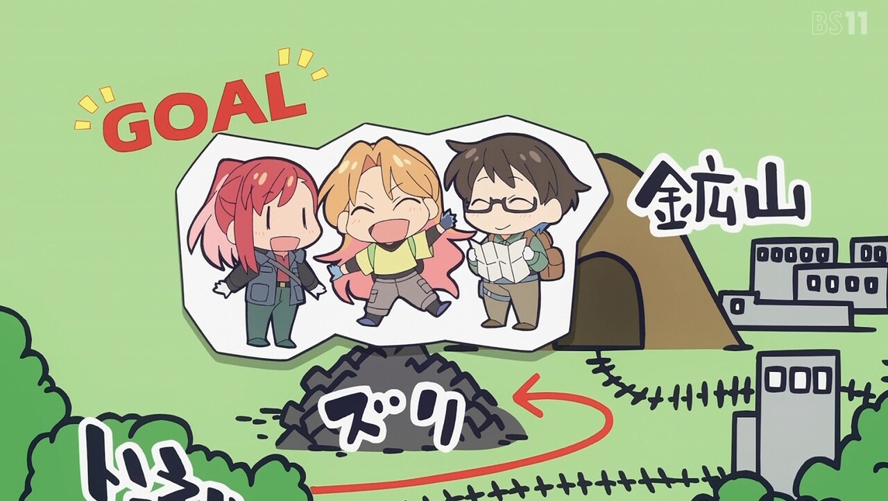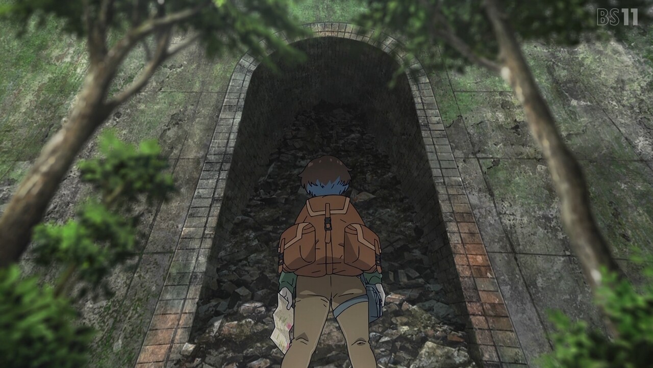 ルリと瀬戸を鉱山に連れていく伊万里。地図を見ながらなんとか鉱山に続く廃線を見つけた3人は、マンガン鉱石を発見する。その後トンネルに到着するも、天井が崩落し、その先がたどれなくなっていた。鉱山跡にたどり着くのが難しくなってしまった3人は、鉱石を積んだ汽車から落ちた石を探すことに。