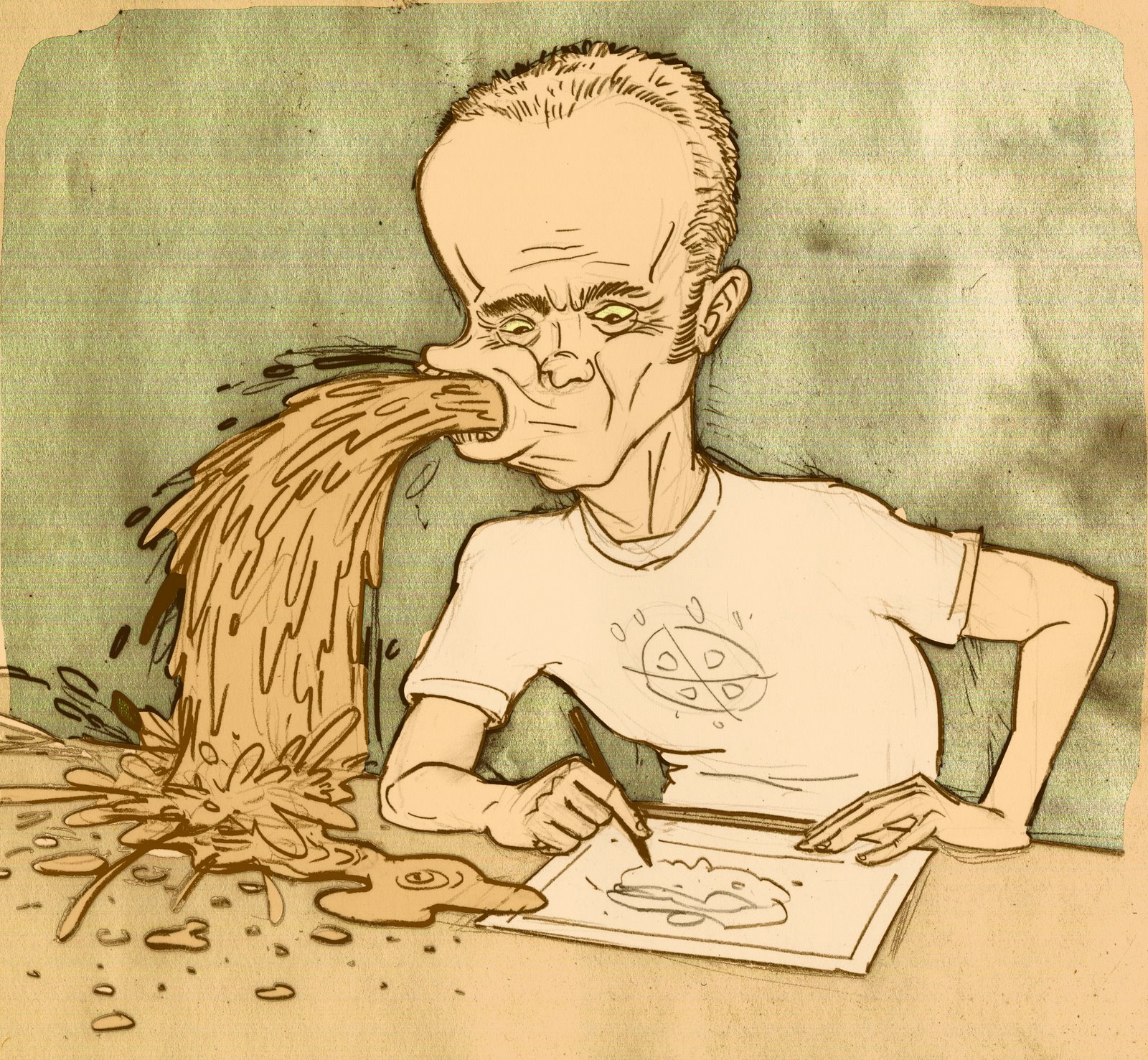 I can proudly tell you that the new drawing turned my stomach a few times as I was working on it. I wish I could show it to you, but what with copyright infringement and all, I'd better not. It was WAY more disgusting than this. WAAAAY."[6]