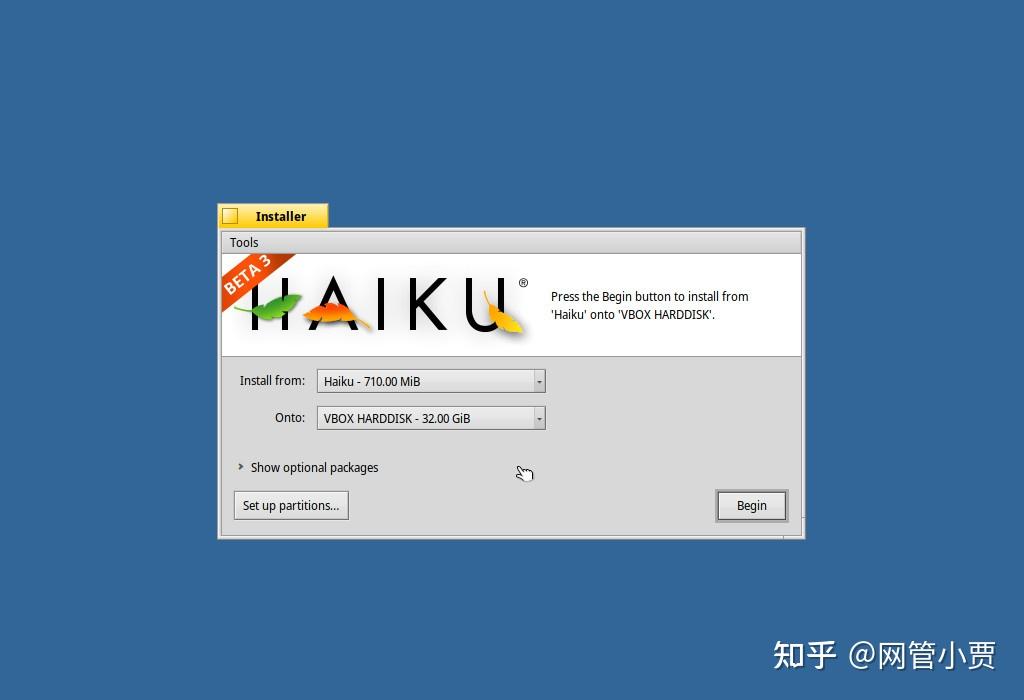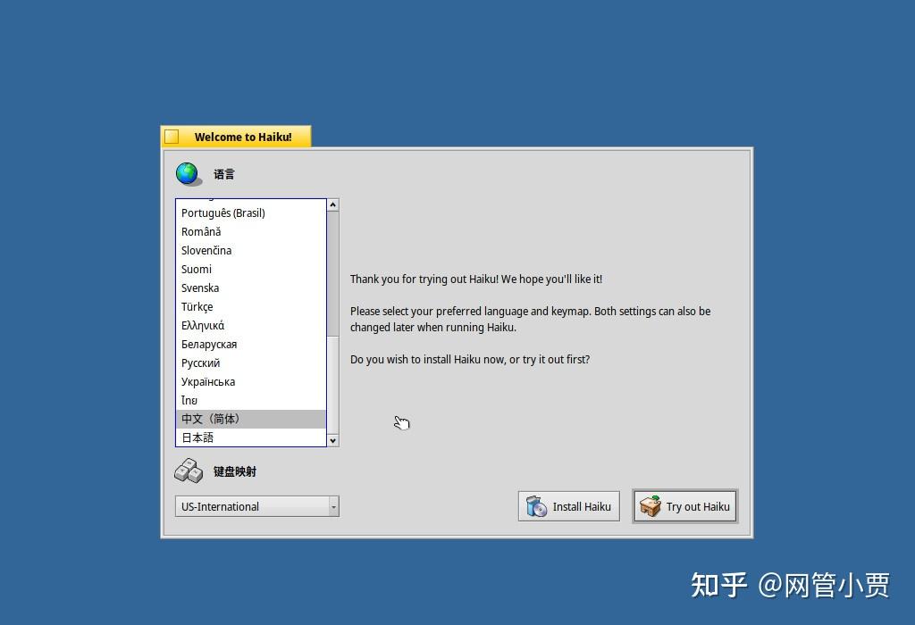如果你只想先看看她的样子,那么选择 Try out Haiku ,我们这儿选择直接安装。