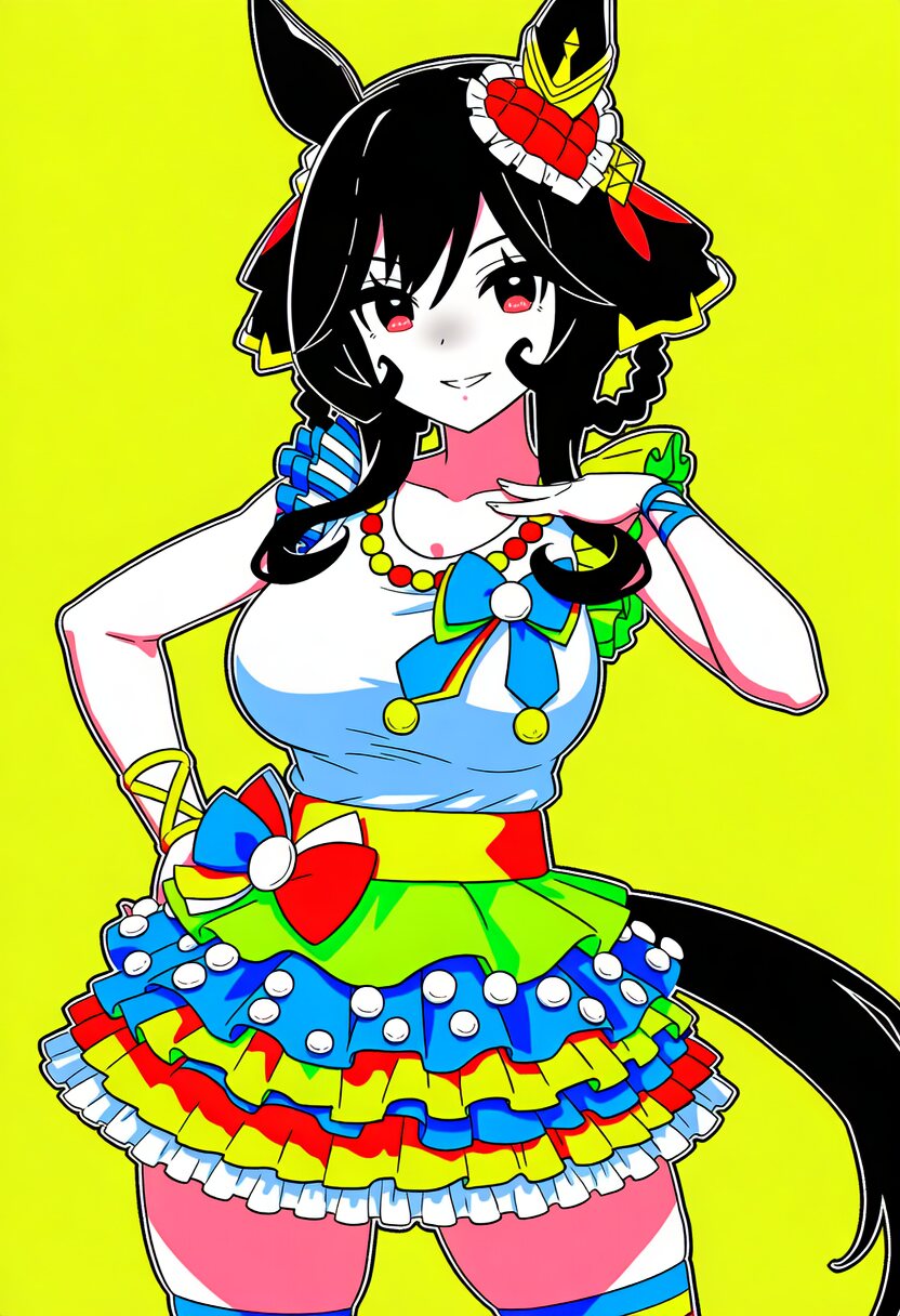 レインコードの死に神ちゃんの格好してるサトノクラウンをお願いしたい
