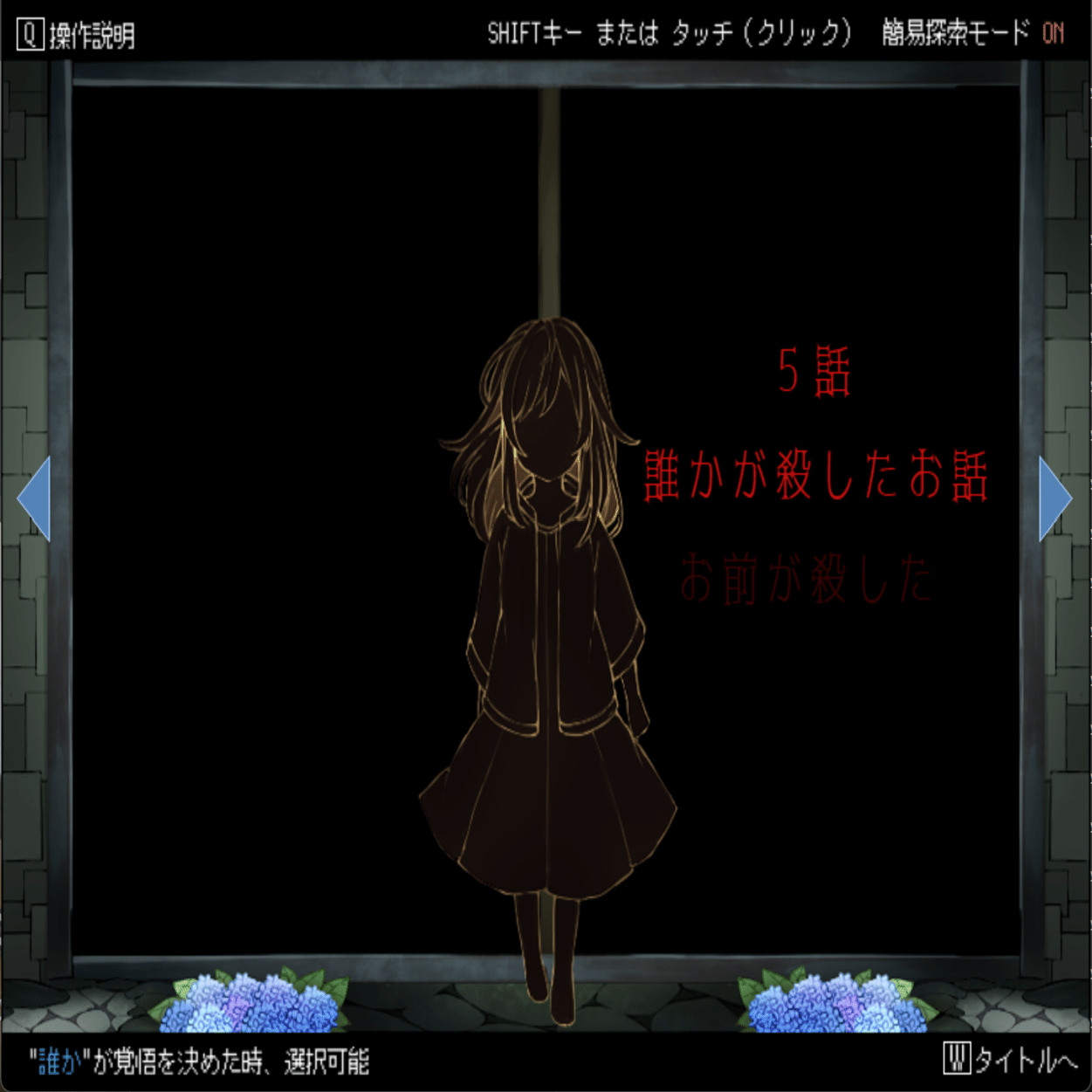 また、トゥルーエンドに行くために必要な条件はこの簡易探索モードでは示されない代わりに「ヒント」という形で表示されます。