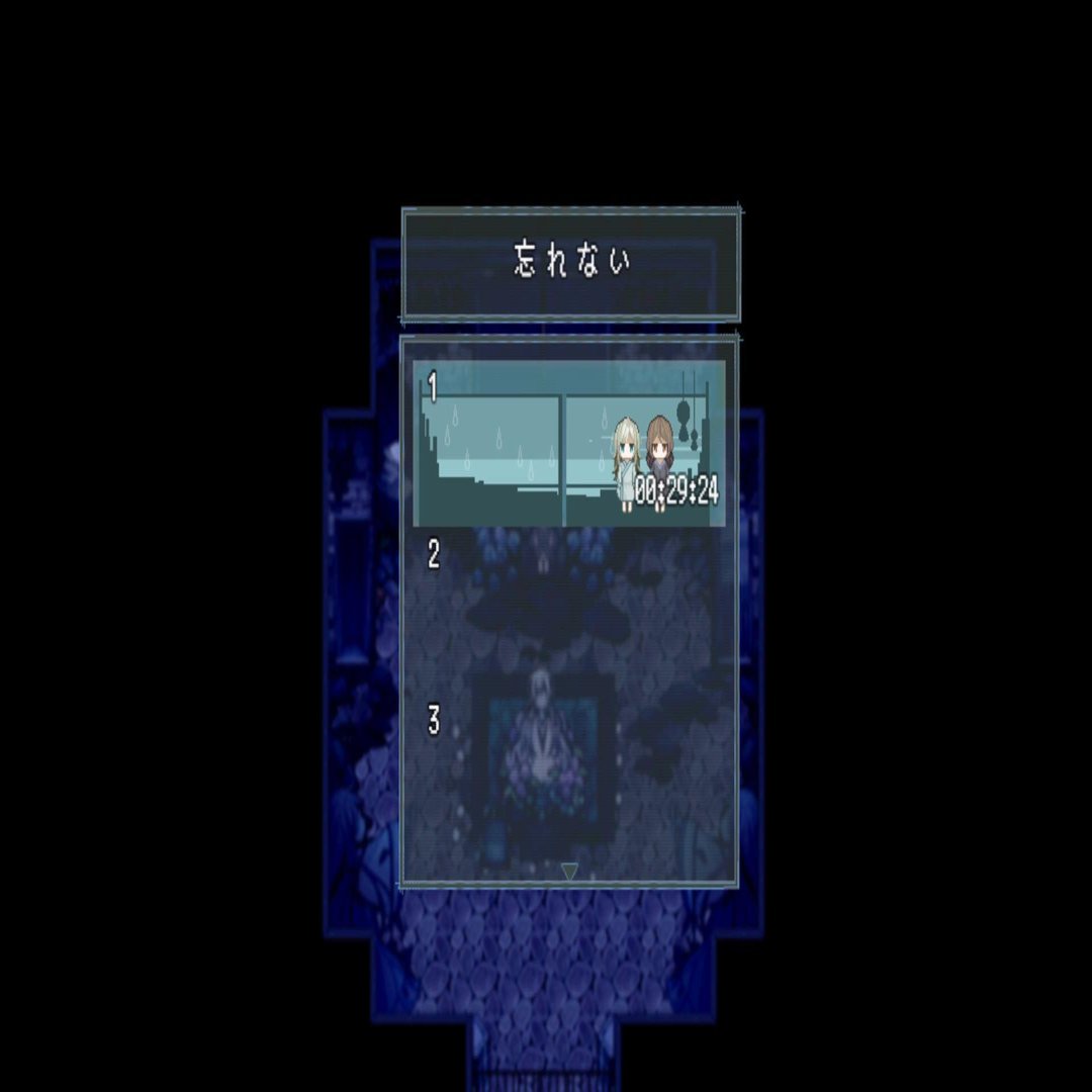 操作周りに関しては普通のツクール作品ですが、UIは独自のものになっており、シンプルなため分かりやすいです。そしてメッセージウィンドウやセーブ画面もおしゃれなものとなっており、みていて楽しいですね。