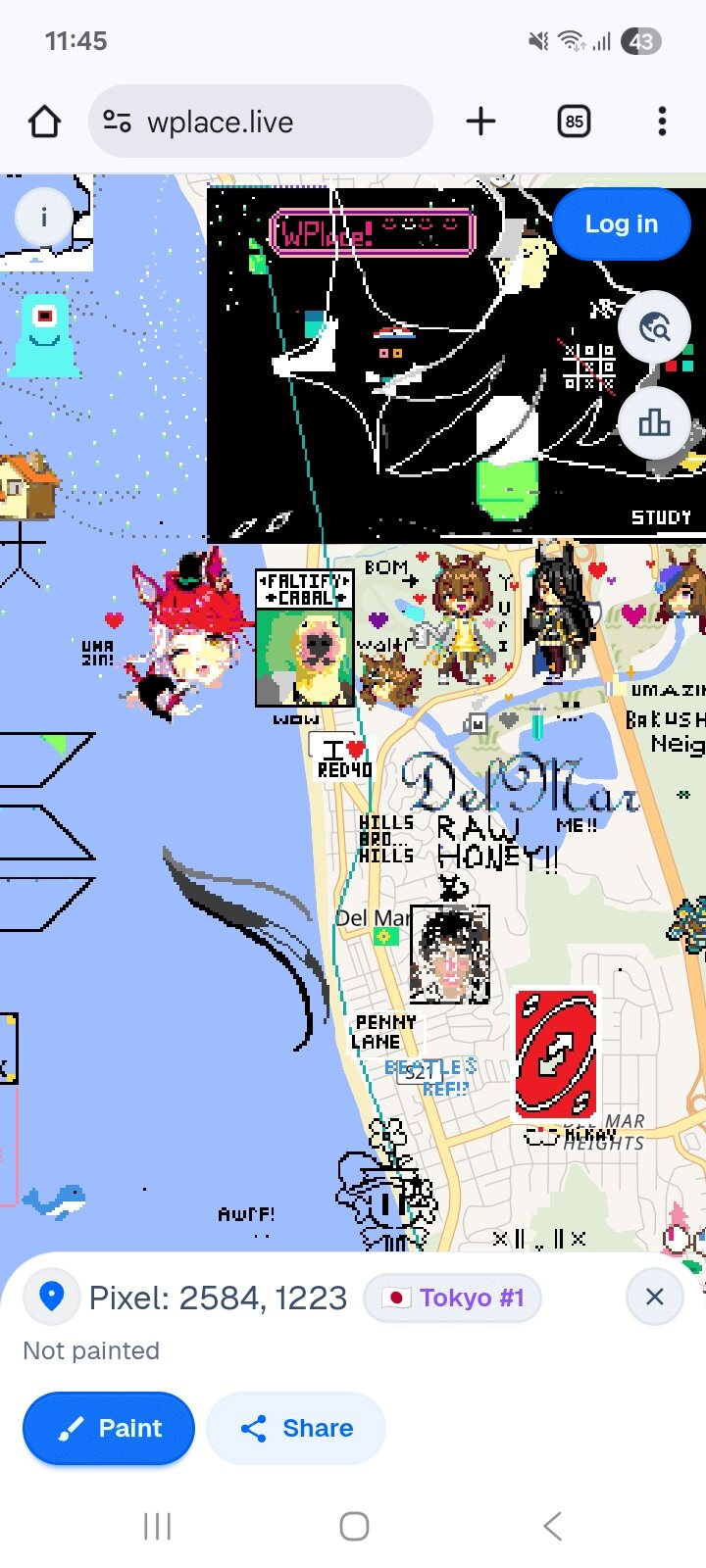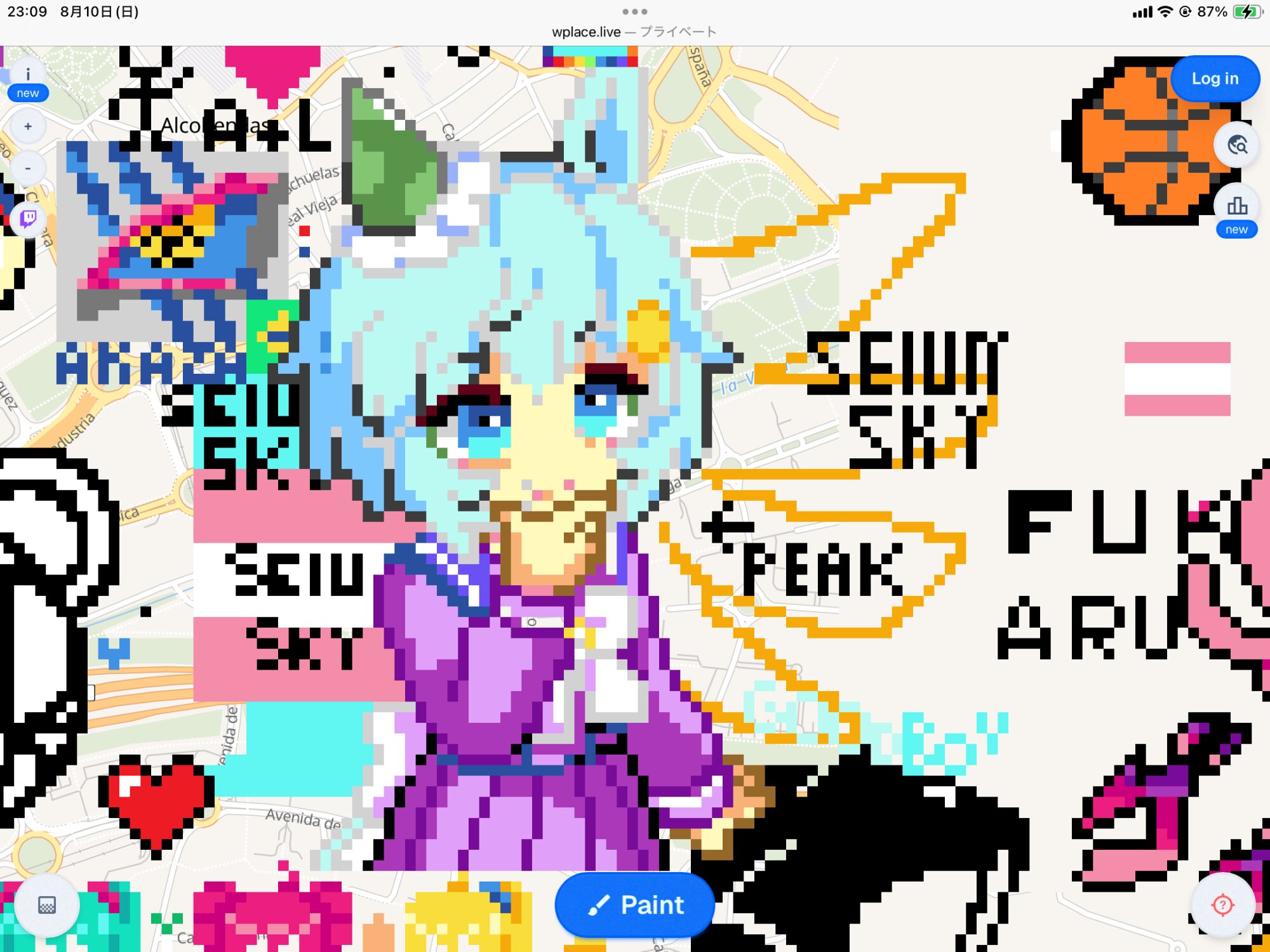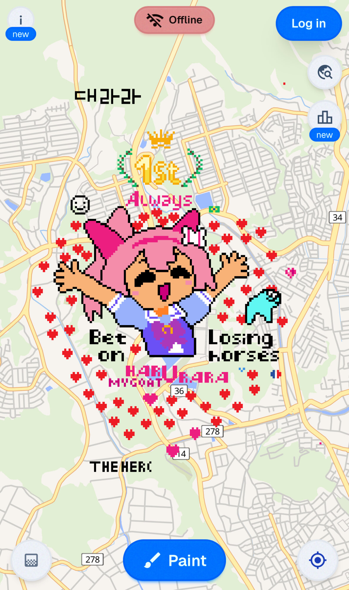今サーバーエラー吐かれて何も出来ないんだけどこれって先に描かれてる上には描けないようになってるの?地道に未開拓の土地探して描く感じ?それとも上書き出来るの?
