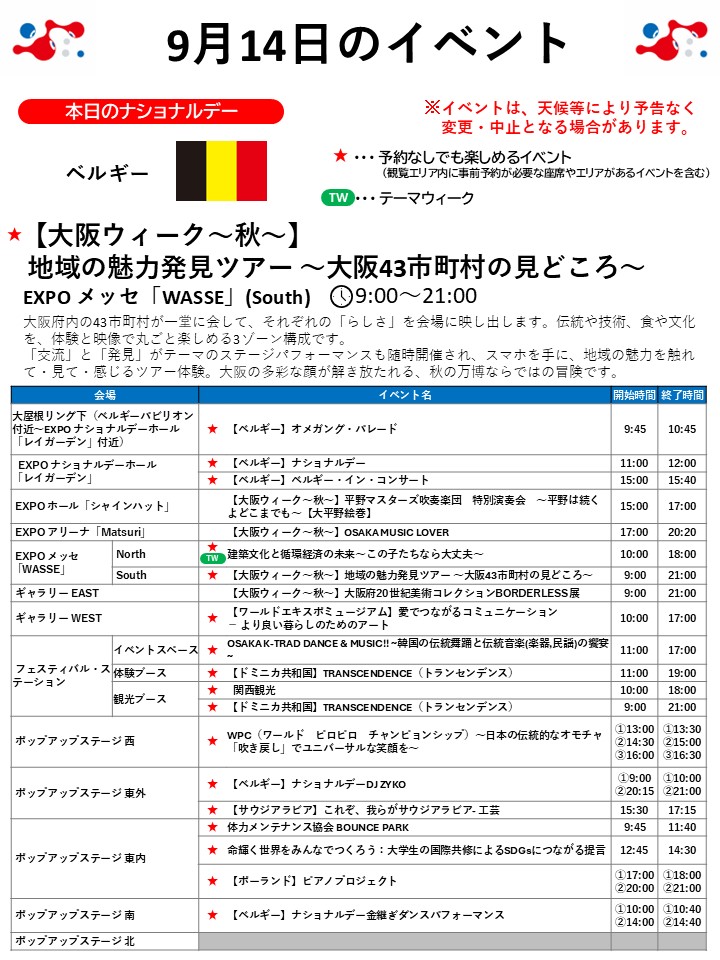 9月14日(日)の万博情報です