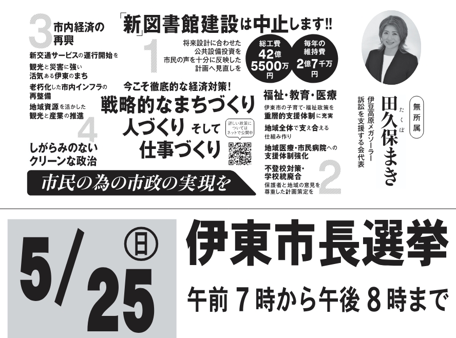 これを見て田久保に投票した奴は、イケオバ、図書館廃止、利権廃止、ソーラー潰しだね。