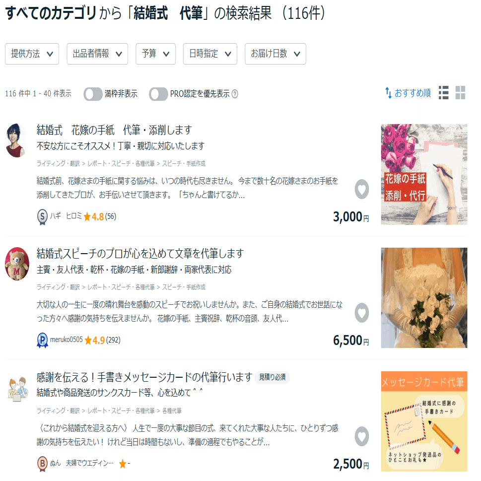 実際にココナラを調べると、、、