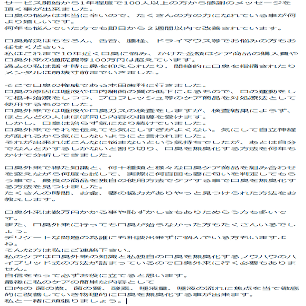 「タカ式 10年悩んだ口臭を無臭化した方法教えます」です(笑)