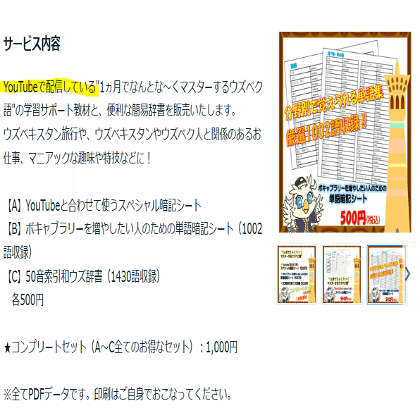 ウズベク語??という言語を教えるサービスで30件以上売っている方