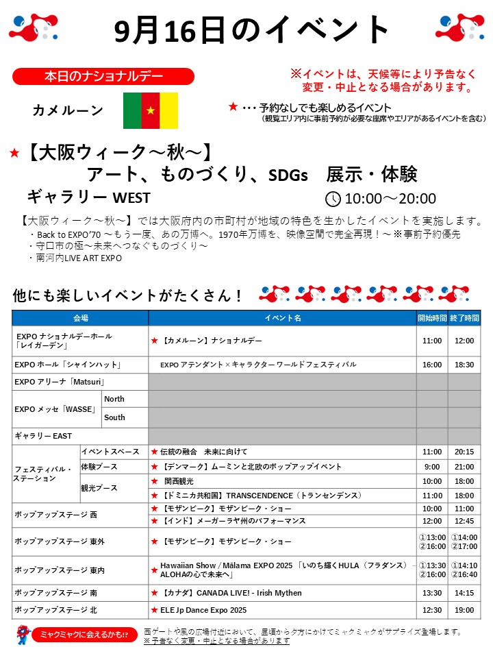 9月16日(火)の万博情報です