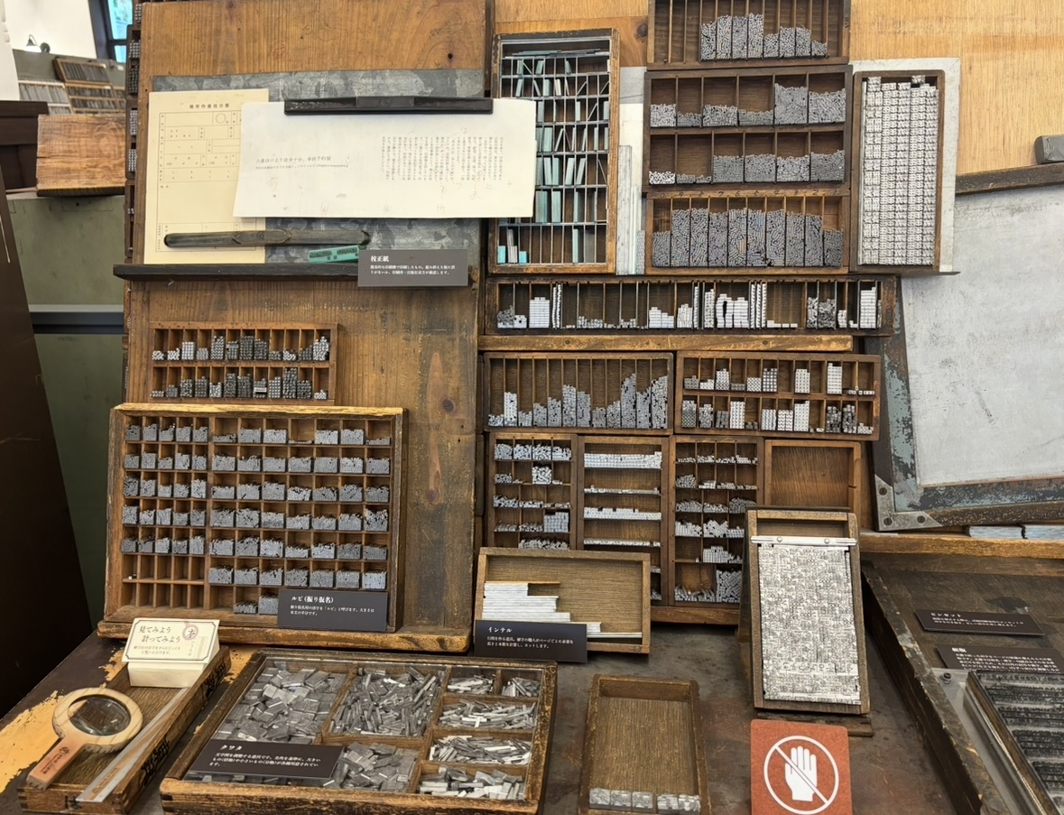 実際に使われていた活字の道具がズラッと並び、文章と映像で活字の印刷の流れが詳しく学べた。