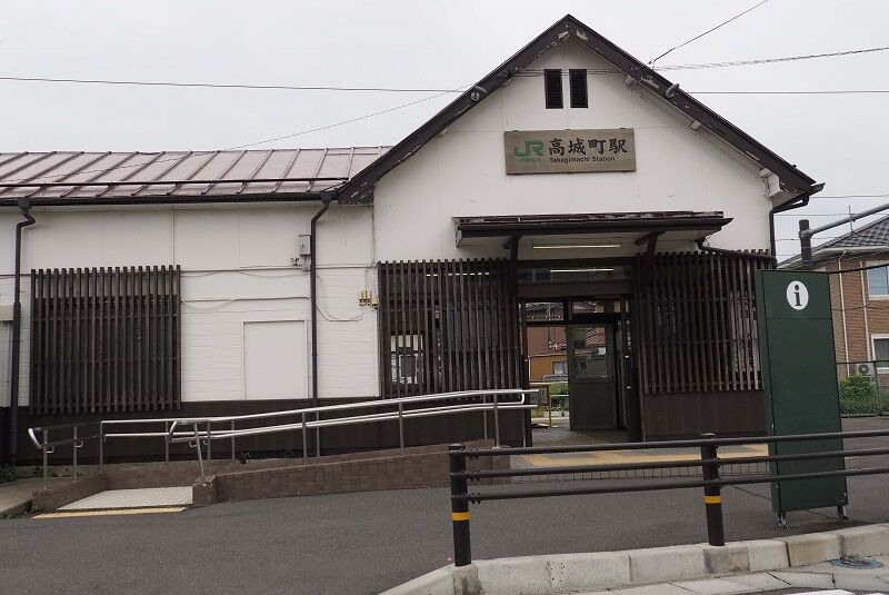 こぢんまりした駅舎。周辺は宅地でコンビニは見当たらない。