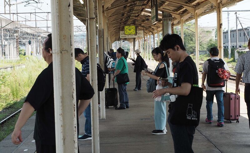 発車を見送る。