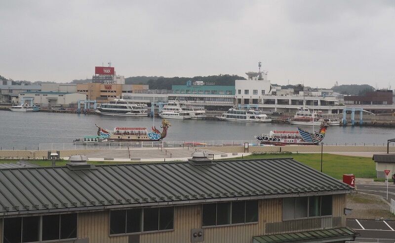 これは本塩釜のあたりで、観光船が見える。ここまで来たのは昭和50年頃で、鉄骨造り、単線の高架線があったのを覚えている。今はなんと東塩釜まで複線になり、コンクリートの高架線が続いている。