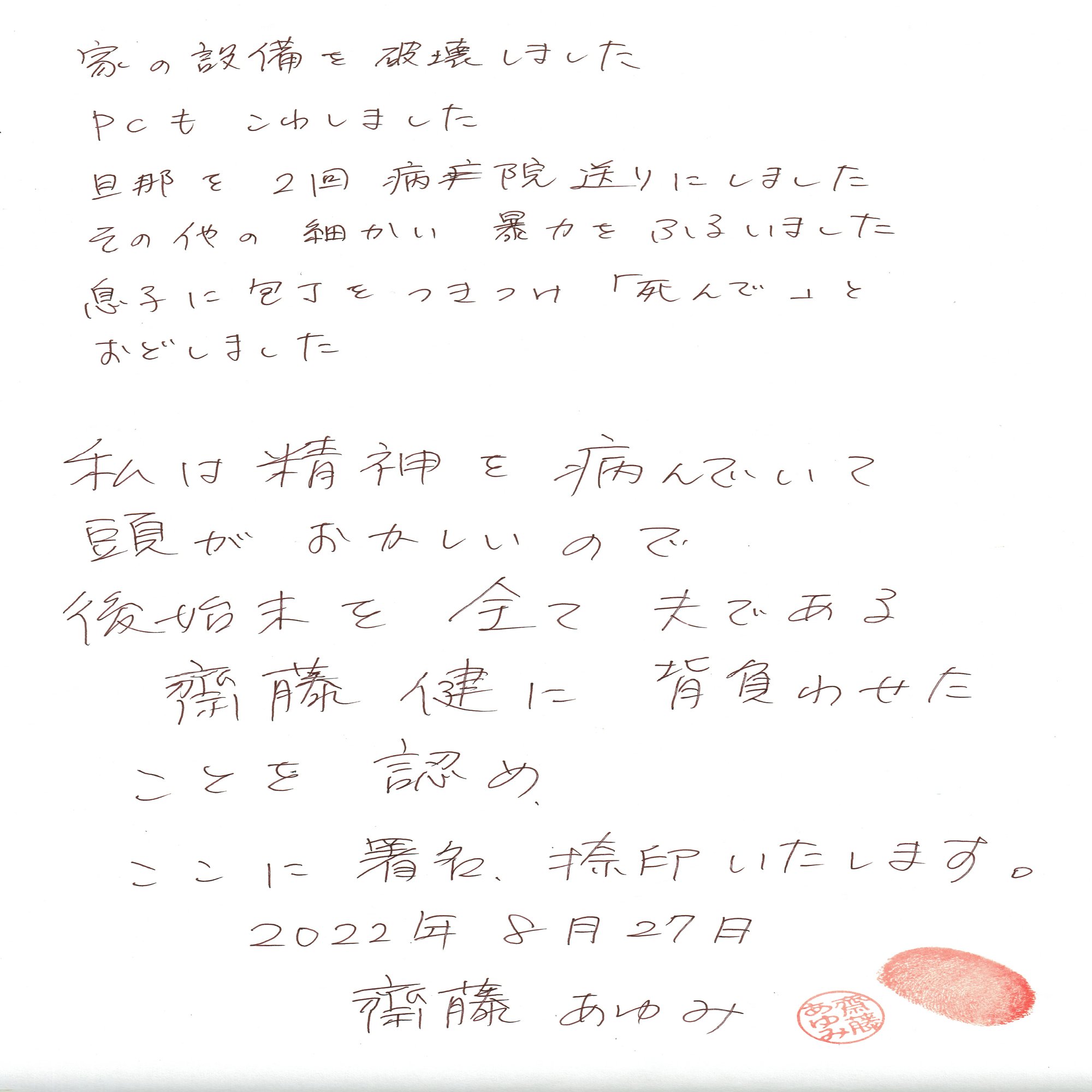 中には妻/齋藤あゆみが犯した核心的な罪、罰金刑存在せぬ罪状に連なる証拠の数々。
