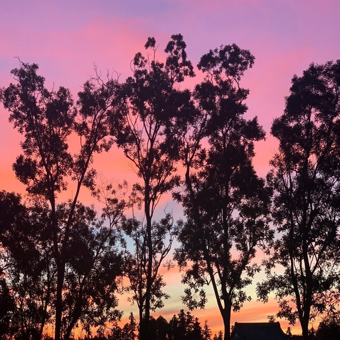 上の室自体が小高い丘のようになっているせいか、薄明の沈みゆく夕陽が大地を覆うマジックアワーのあいだ、壮大に広がるケヤキの枝葉が真紅に燃え上がる瞬間がある。