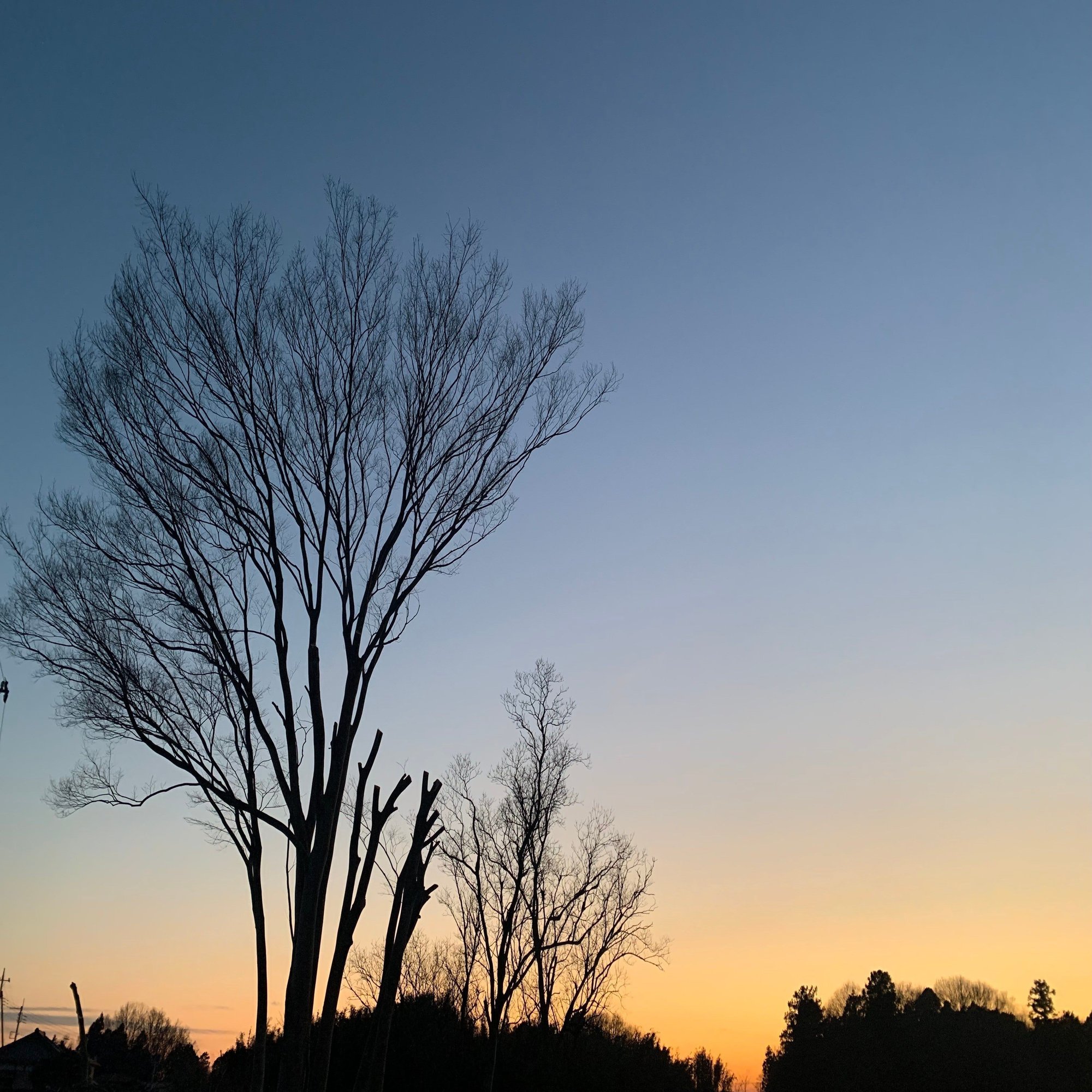 箒をダイナミックに広げたような樹影は、朝も晩も、夏も冬も、暴風雨にさらされても、息を飲むような秋の夕陽に照らされても、来る日も来る日も変わることなく、静かに葉をたくわえ、落とし、そこに立ち続ける。