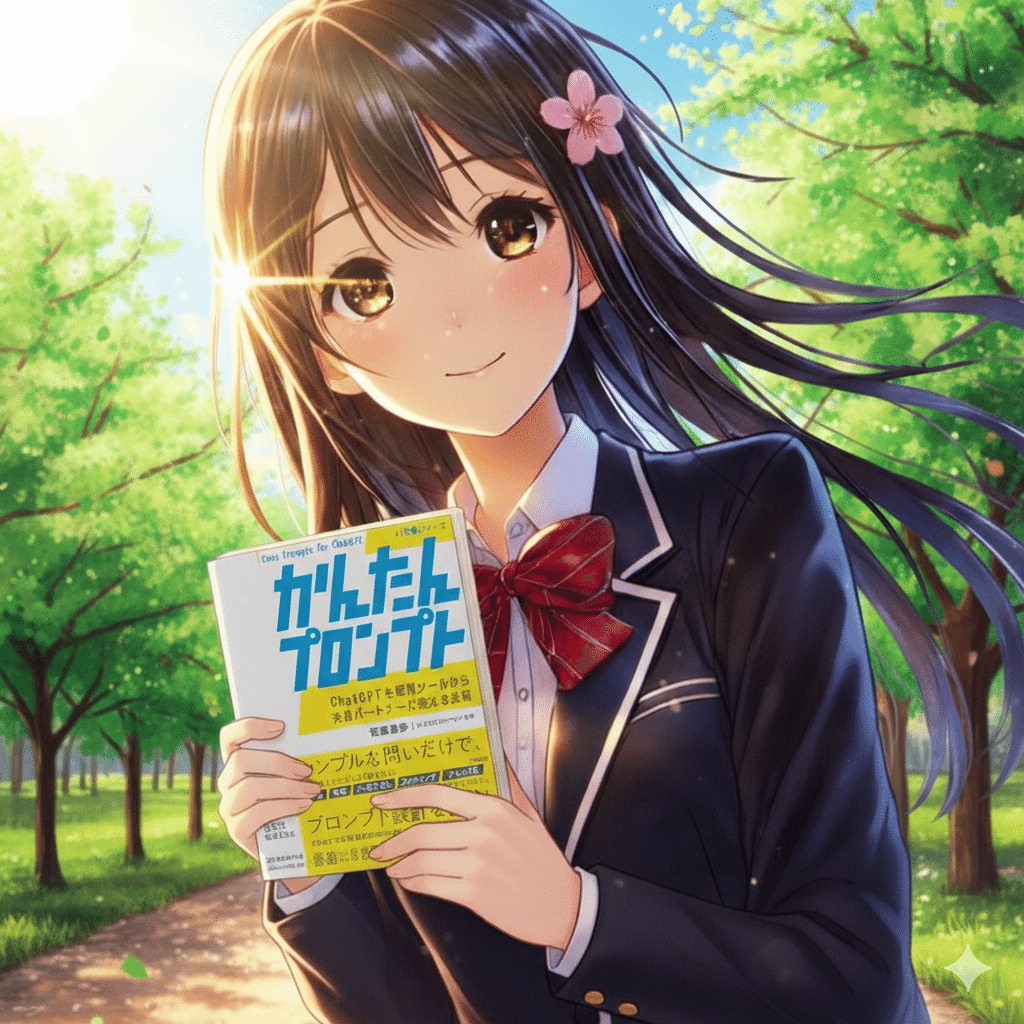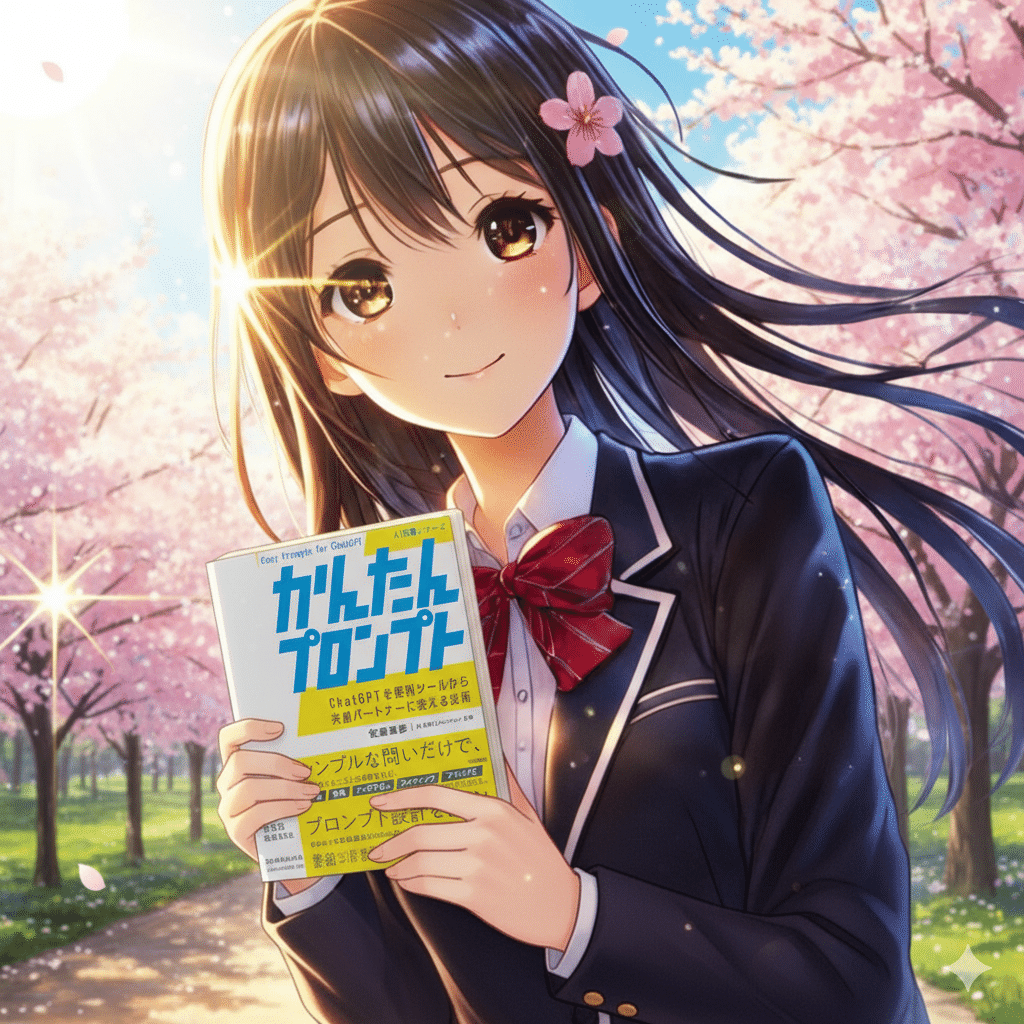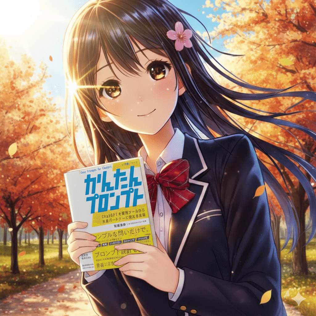 最近私が出版した「かんたんプロンプト」を持たせて、季節を変化させてみました。