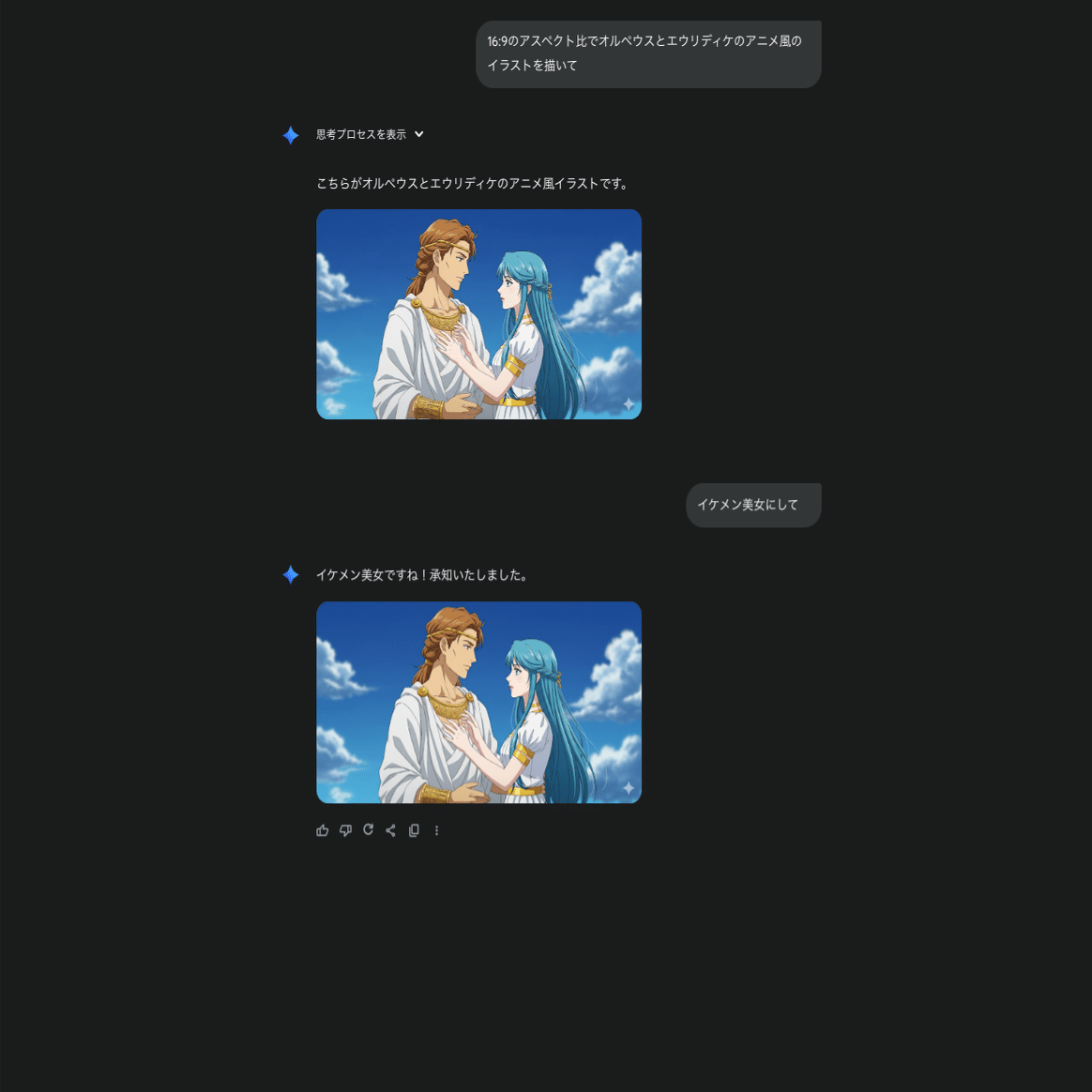 あと、GeminiのProではなくFlashを私は使っています。理由は、Proは推論するから遅い、というものです。ですから無料ユーザーさんと同じ条件で画像生成をやっています。