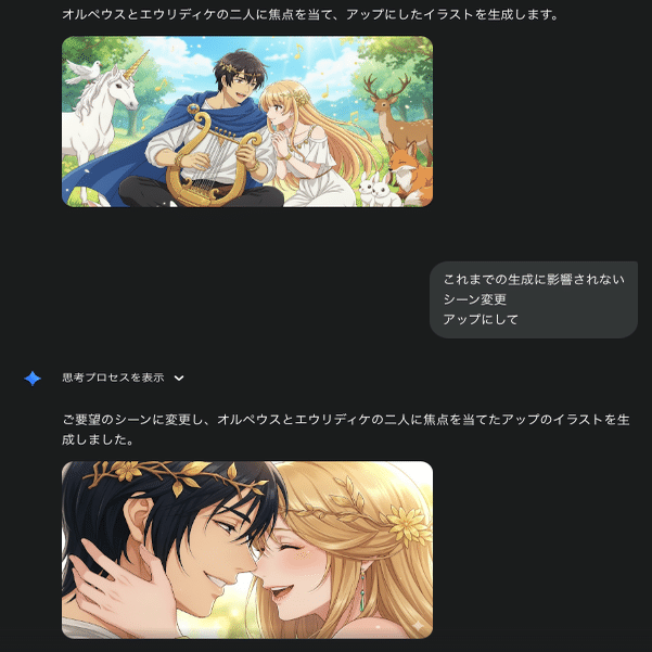 佐藤氏の動画では、オルフェウス神話を題材に詳細な検証が行われています。従来手法では変化しなかったキャラクターが、この技術により以下の変化を実現しました: