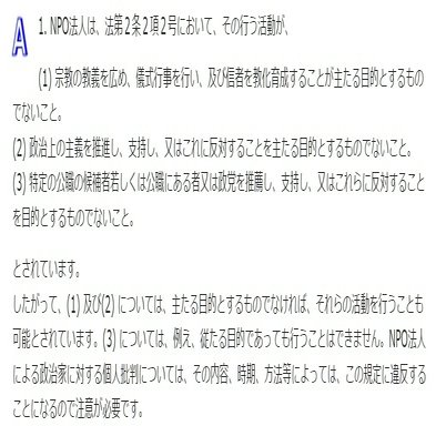 空「それは気になって都庁担当にも聞いて回答保留中なんだけど、”政治活動を主たる目的とする”について自分でも調べてみたところ、NPO法に該当条文がありました」