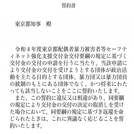 空「なお、共産党と強いつながりがあるColabo代表仁藤夢乃さんはColaboが2021年度に868万円受け取っているDV支援交付金については次のような誓約書を提出してるようです」