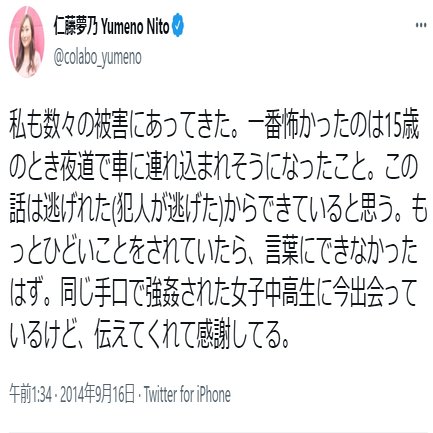 空「他にも、共産党と強いつながりがあるColabo代表仁藤夢乃さんの鉄板持ちネタとして夜道を歩いてたらさらわれそうになったって話があるんだ」