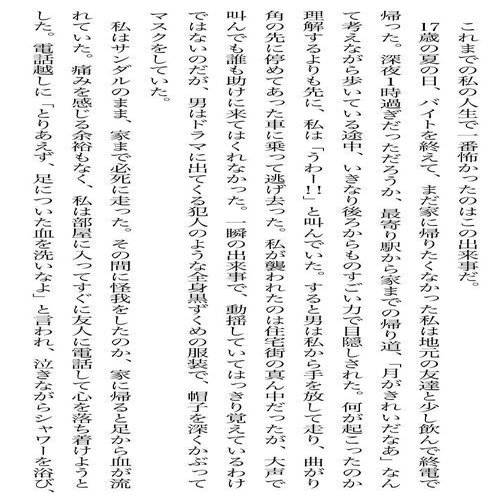 2014年6月 17歳 夜道で突然目と口を塞がれて車に連れ込まれそうになった