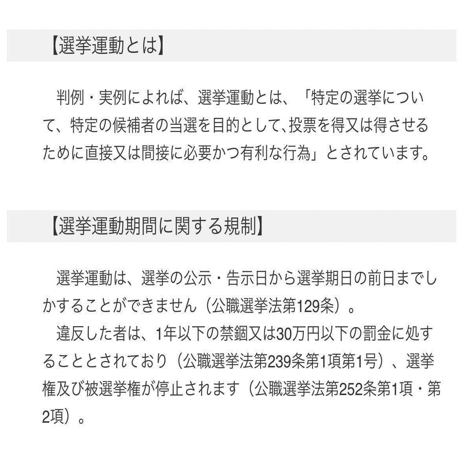 空「一般社団法人だからセーフセーフがはは!くらいの気持ちじゃない?税金の交付金事業で誓約書書いたことは忘れてたんでしょう。でもこれ公職選挙法違反ですね。選挙期間外における特定の選挙での候補者への投票をお願いしてるわけですからアウトです。動画は保全しました。」