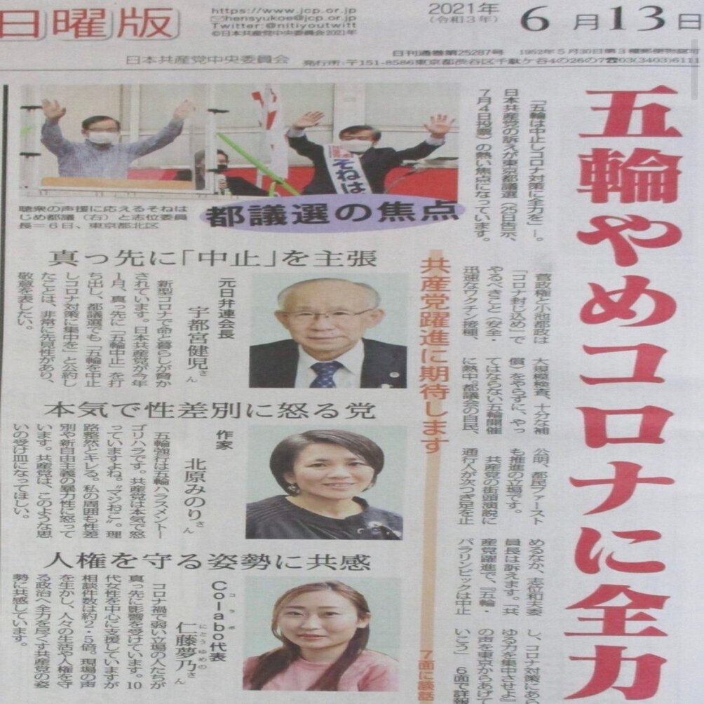 空「共産党と強いつながりがあるColabo代表仁藤夢乃さんはあかはたの常連なんだよね。そしてバッチリと共産党を応援してる」