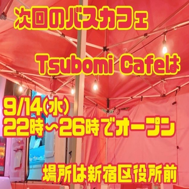 空「ナイス説明セリフ。まずはこれを見てほしい。Colaboのバスカフェ事業は新宿区役所前で22時~26時に行われている」
