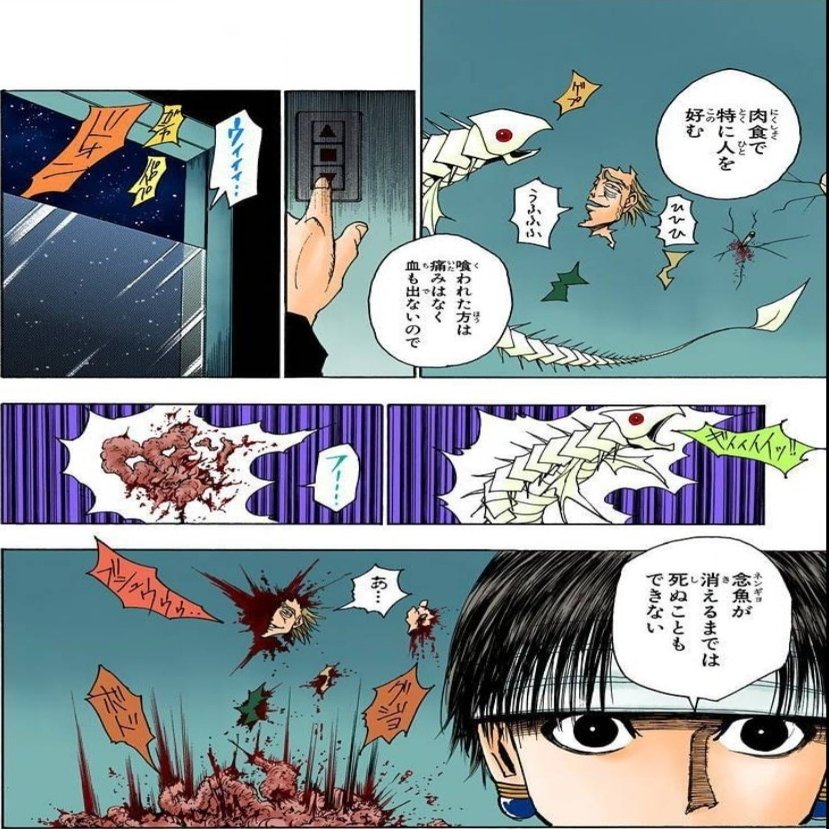旅団初期メンバー8人の能力を左手の本から呼び出し、代償としての痛みに全身を貫かれながら、幻影旅団の仇であるヒソカと戦う。