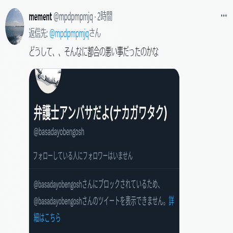 これは弁護士法56条1項の「品位を失うべき非行」にあたり、弁護士の品格を落とすものであるし、このことを中川卓弁護士に質問した人はブロックされたそうです。心から恐怖したので、改めて中川卓弁護士にこの理由で懲戒請求(2通目)を出しました。