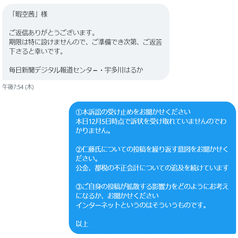毎日新聞の宇多川はるか記者(Colabo提訴記者会見や灯火記事の記者)より、次のような質問で取材があり、公開許可もいただきましたので、回答を含めて公開します