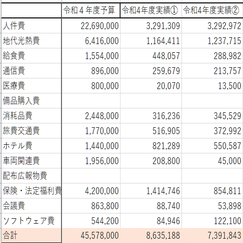 ひ「ラストにまとめというか、不正じゃないんだけど指摘しよう。通期でColaboは4557万8000円を申告している。そして第1,第2四半期で863万と739万しか使えてない。残り2四半期で3000万くらい予算が残ってる。全然使いきれてないんだよ。おかしいよね、人件費すら計算より全然少ないんだ。そもそも給食費とかは計画からして減ってるし」