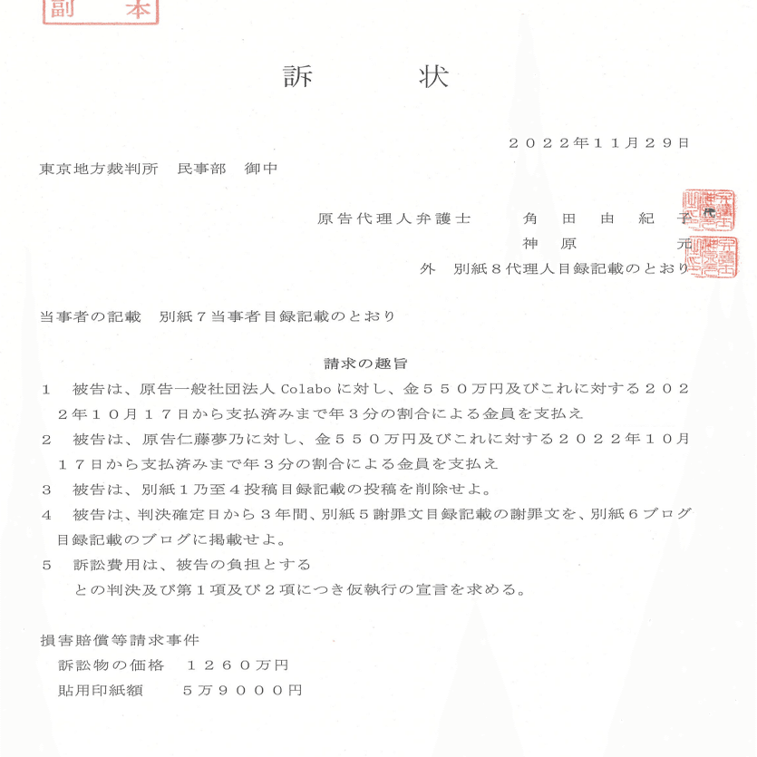 Colabo弁護団訴状とその解説