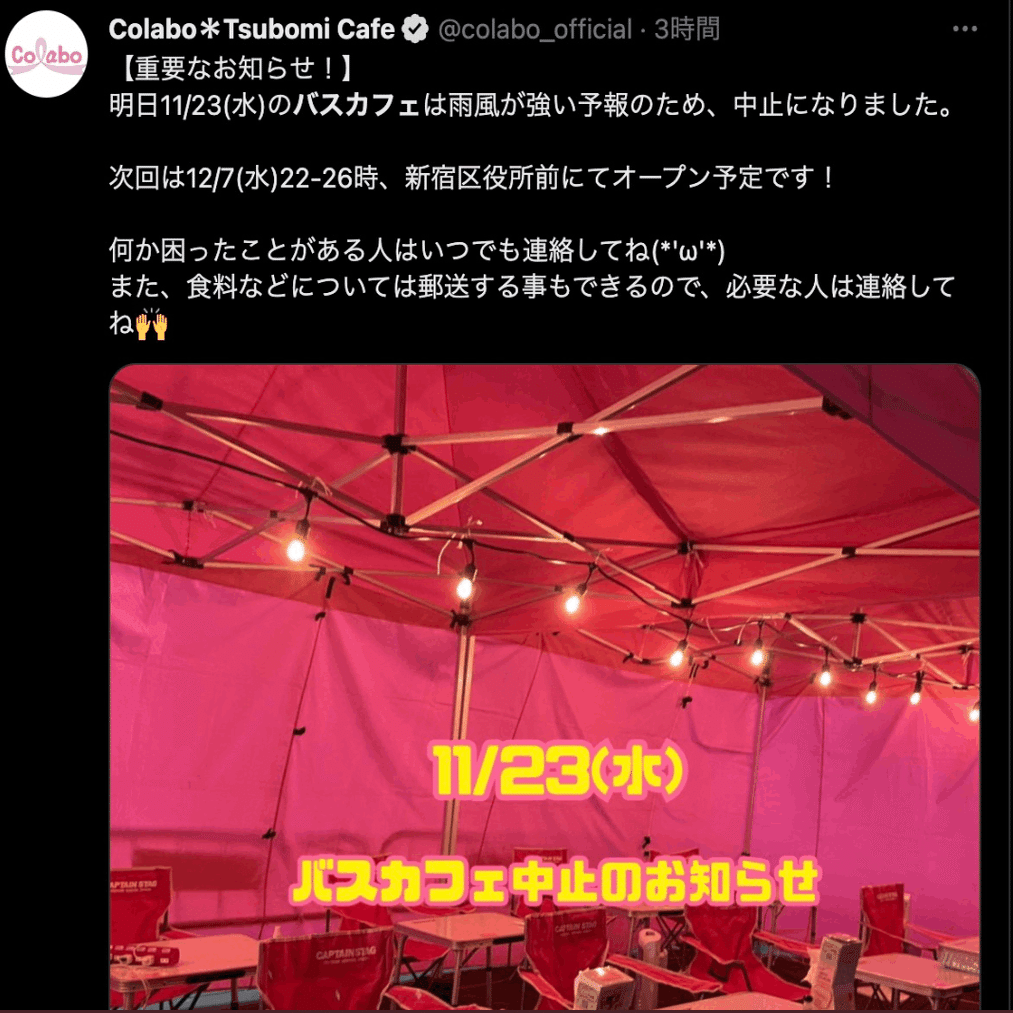ひ「バスで全国各地を回るとかなら、バスカフェの意味もわかるんだけど、たまに新宿区役所の駐車スペースかりてやるだけなら新宿事務所でよくね?」
